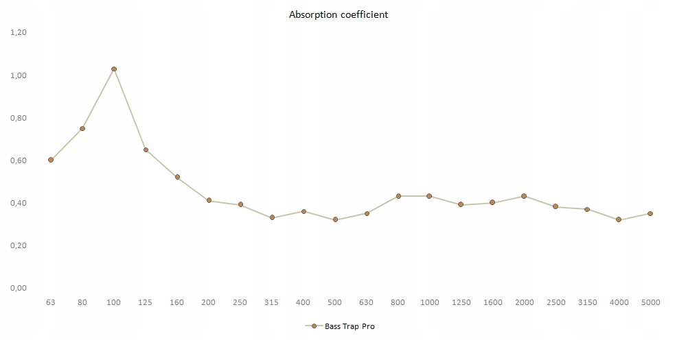 Угловая панель работает в диапазон низких частот от 60 до 150 Гц, труднодоступный для поглощающих пористых материалов тип минеральной ваты или губки. Панель настроена на поглощение низких частот волн акустических систем, особенно в небольших помещениях для прослушивания, таких как домашние гостиные, студии и домашние кинотеатры. В отличие от используемых в углах” басовых ловушек " из минеральной ваты или пенополиуретана здесь демпфирование более высокой полосы незначительно, помещение остается живым и звучный, и стереофонический прием музыкальной сцены не нарушается сильным поглощением средние и высокие частоты по углам комнаты. Это позволяет сохранить правильные пропорции время реверберации по всему музыкальному диапазону.