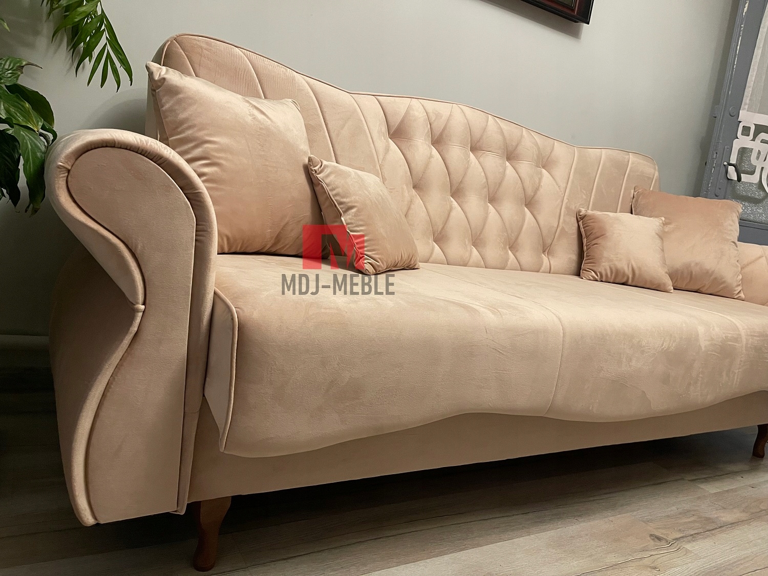 Produkt jest idealnym sposobem na nadanie w Twoim domu estetycznego , a zarazem luksusowego stylu GLAMOUR!. Zestaw posiada 2 kanapy z funkcją spania oraz pojemnikami na pościel . Zastosowany został automat wersalkowy ułatwiający rozkładanie. Kanapy stoją na stylowych cdrewnianych nogach, które są doskonałym dodatkiem mebla.
