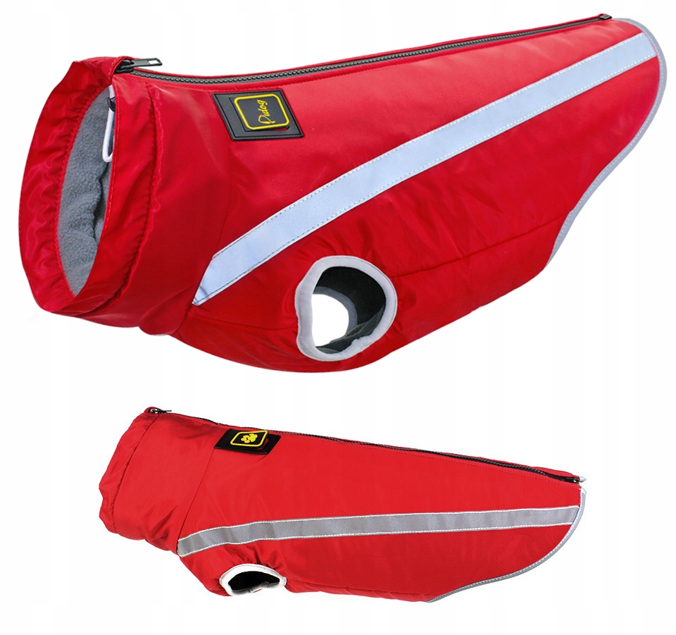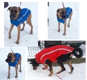 Утепленная одежда, регулируемая под горловиной, застегивается на молнию вдоль спины собака.