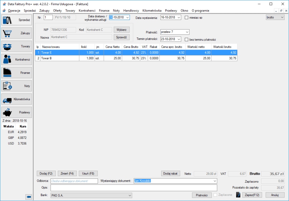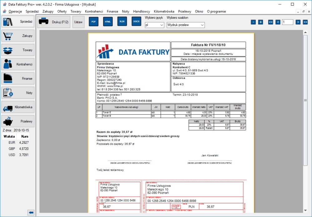 Дата счета-фактуры-это простая и в то же время обширная программа для выставления счетов-фактур, которая благодаря своей конструкции он позволит за несколько минут начать работу даже менее знакомому пользователю. Программа Data Invoice предназначена для малых и средних предприятий. Программа получает обновления ежемесячно дополняя программу новыми функциями и текущими правилами уже более 18 лет.