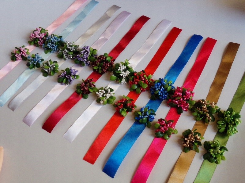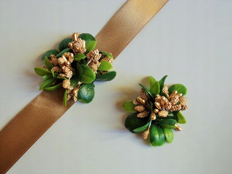 Na rękę wiązany jest za pomocą satynowej tasiemki o szerokości 25mm i długości ok. 40cm.