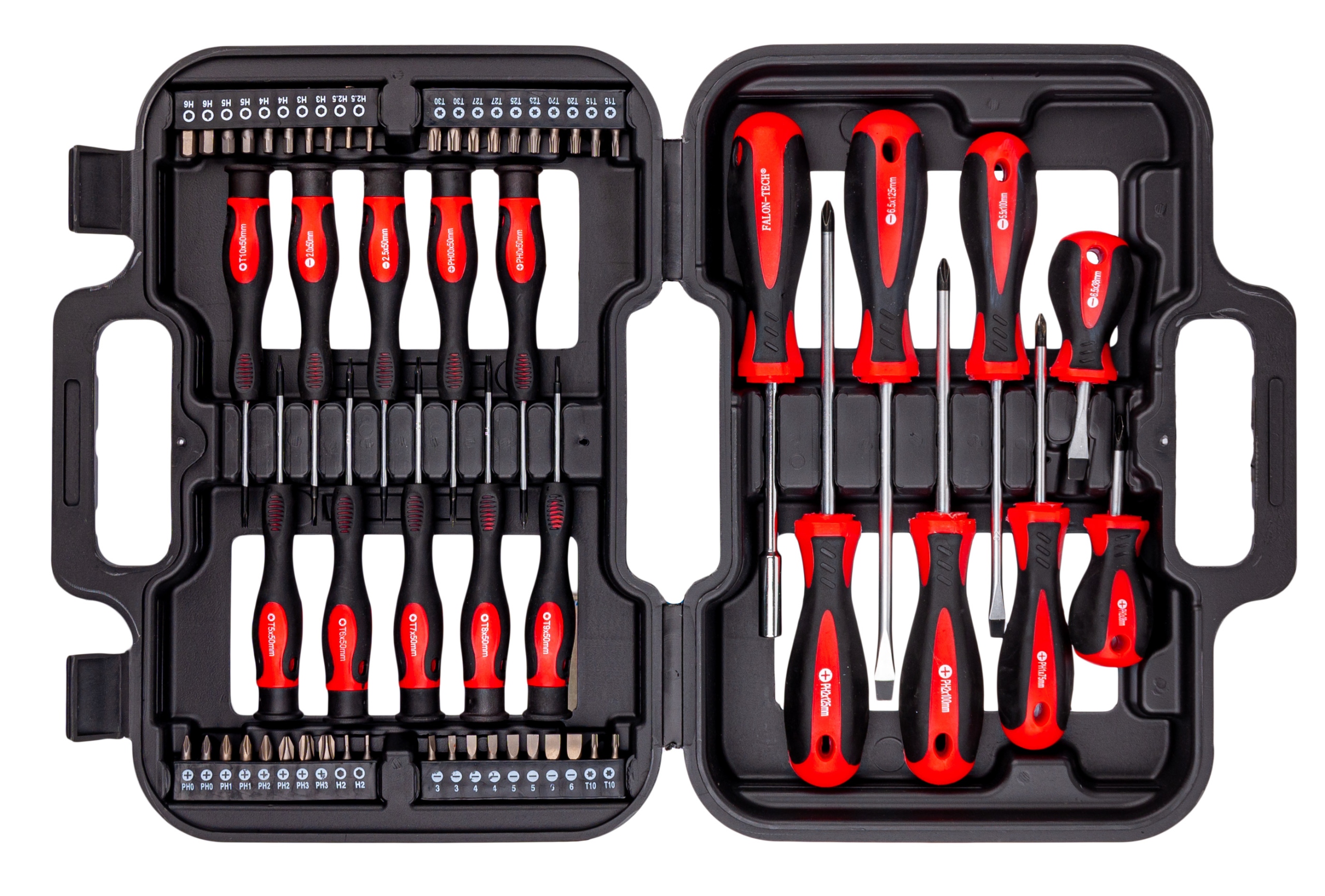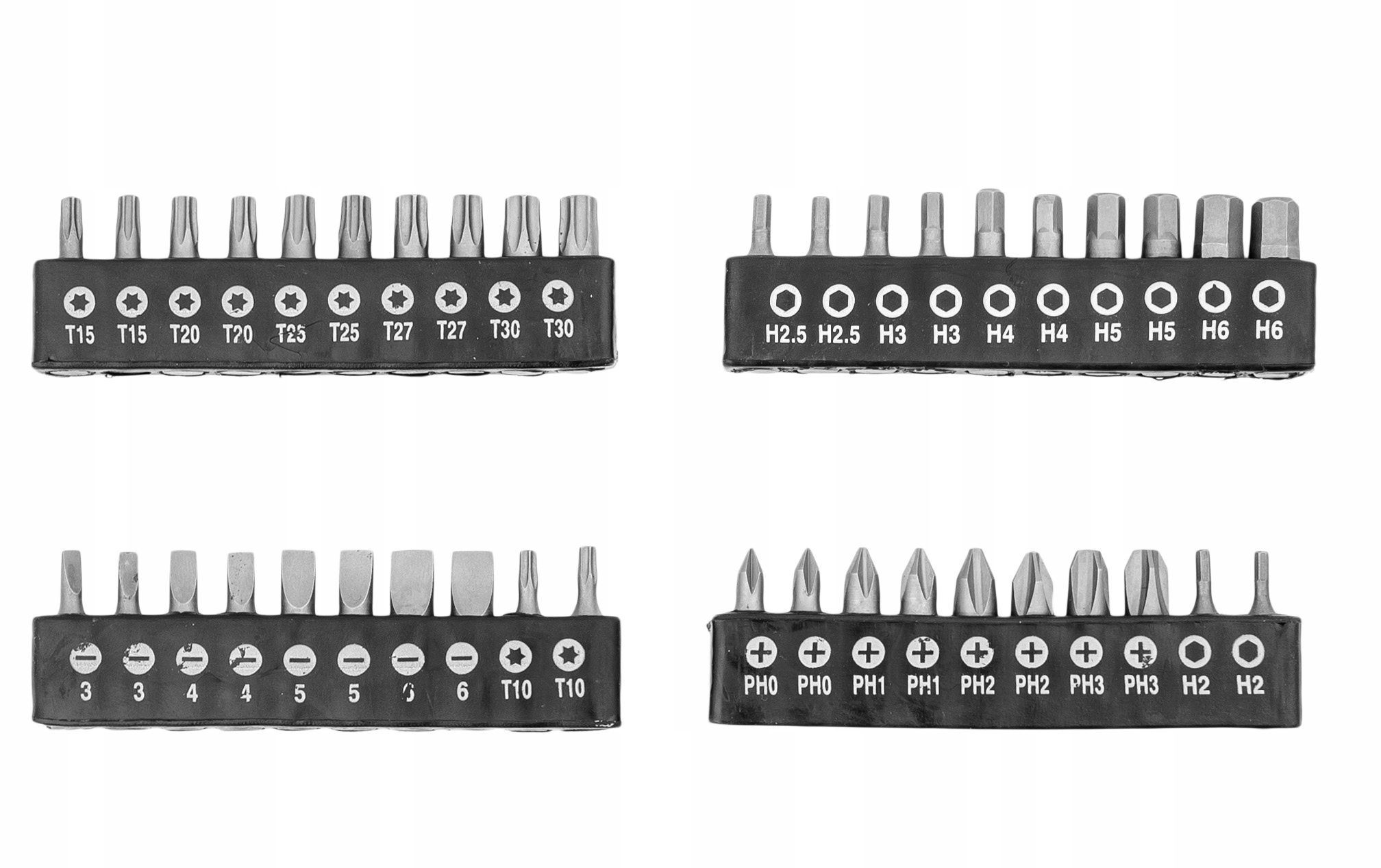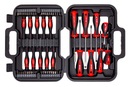 Komplet zawiera 58 wysokiej jakości elementów. Grot każdego wkrętaka wykonany z bardzo wytrzymałej stali S2, zapewniającej długą żywotność.