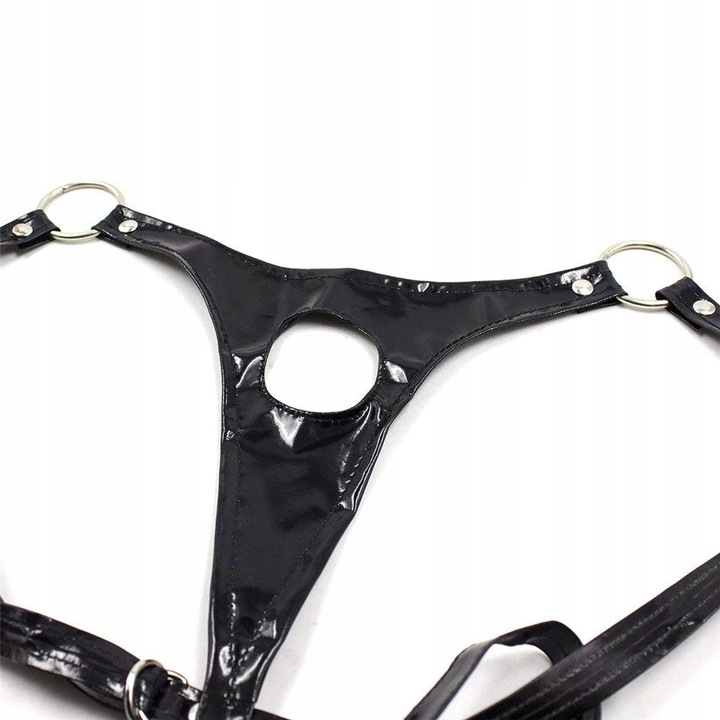 Эротическое белье-для настоящих мужчин. Черные латексные стринги мужские с отверстием и упряжь на грудь и шею. Парень в этом наряде поразит каждую женщину. Это отличный способ, чтобы удивить свою партнершу. Также идеально подходит для striptizerów / czipentejsów. Мужское эротическое белье ! Это то, чего хочет каждая женщина. Vinyl, Латекс, Кожа, Лайкра