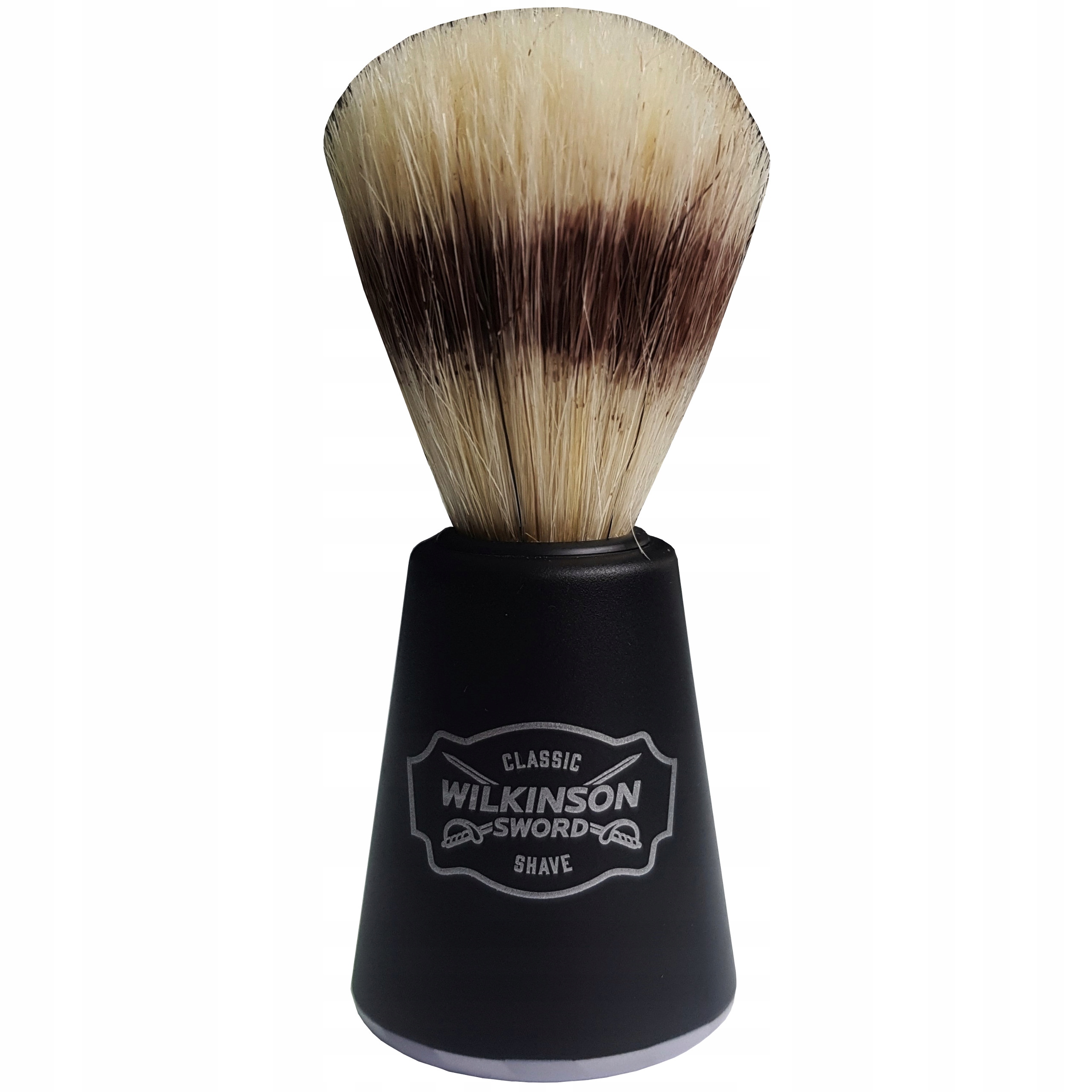 Завершает набор парикмахерская щетка для бритья из чистой щетины и специальное мыло для бритья, смягчающее волосы на лице.
