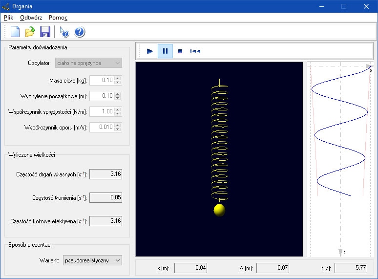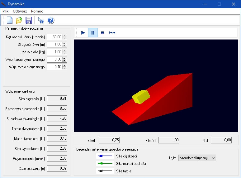 Программа носит интерактивный характер. Опыт начинается с настройка параметров и начальных условий. Примеры настроек также можно загрузить из файла с программой, предварительно записанной или подготовленной учителем. Затем мы запускаем симуляцию в окне или (в некоторых модулях) в полноэкранном режиме.
