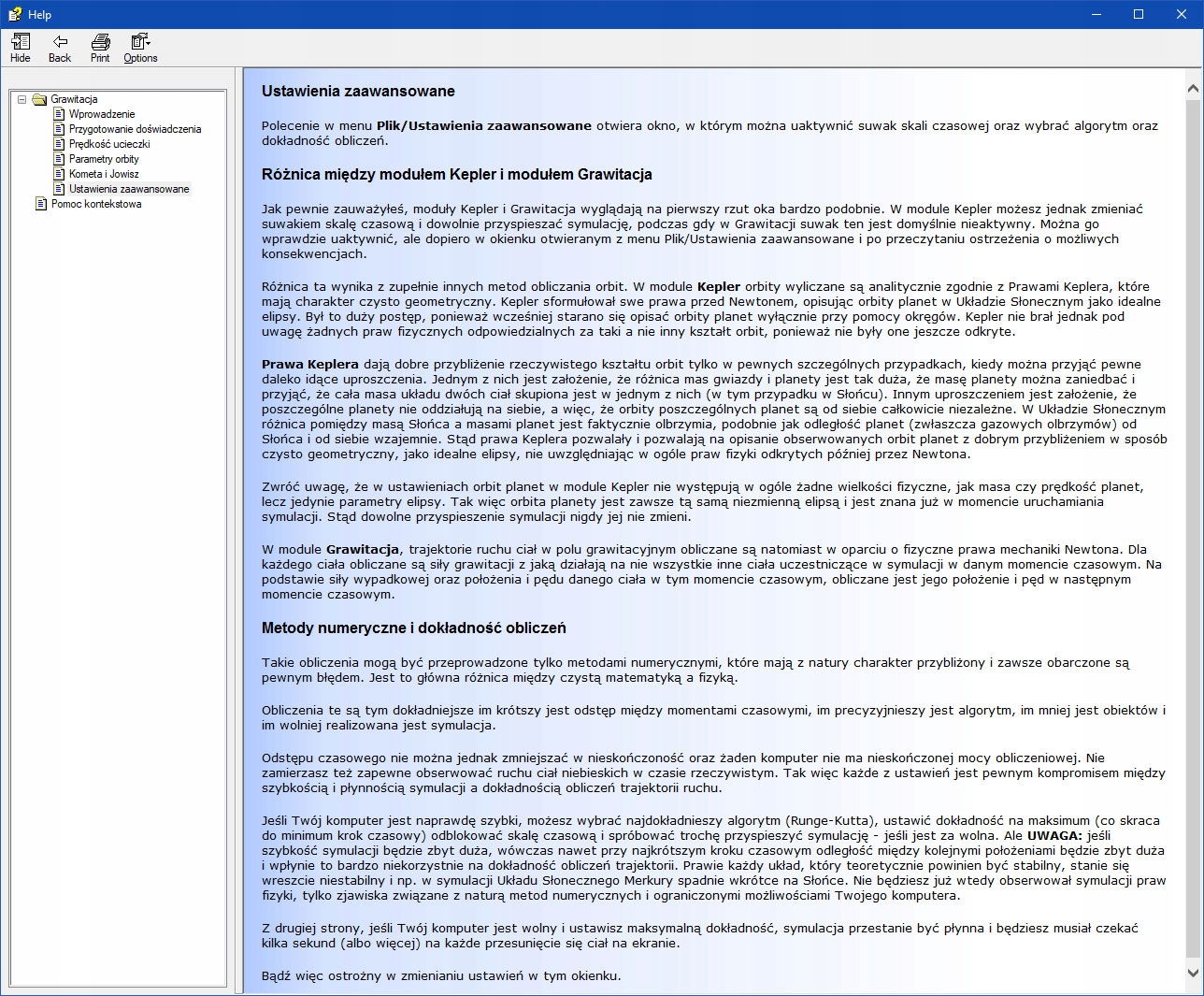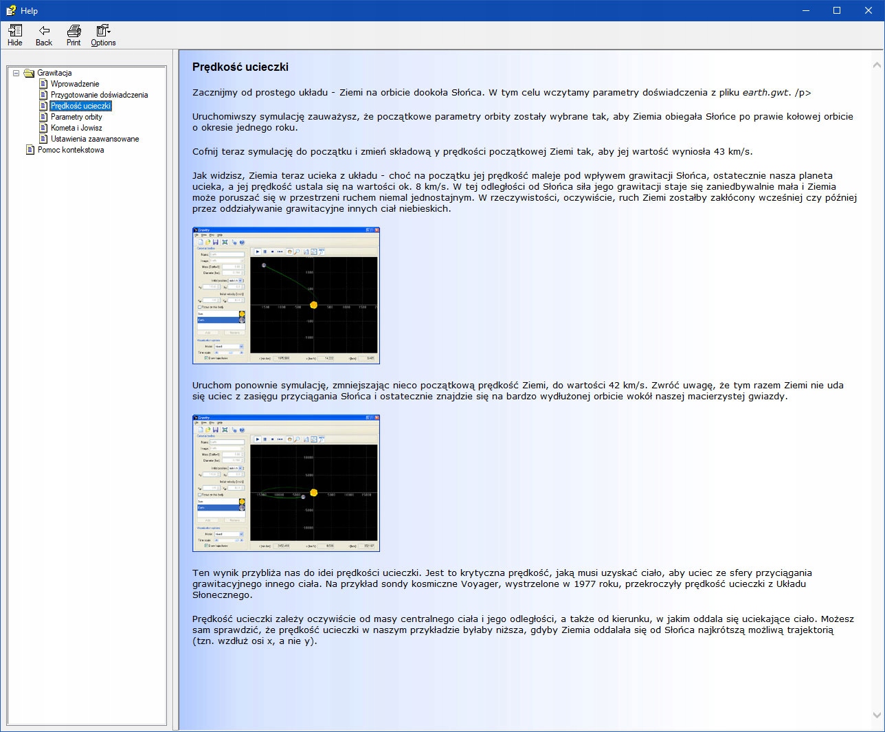 Подробная и понятная документация для каждого модуля, помогающая понять смоделированные физические явления и содействие как оптимальное использование настроек, поставляемых с программой как и подготовка собственных учителем или опытным пользователем.