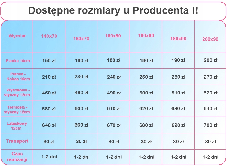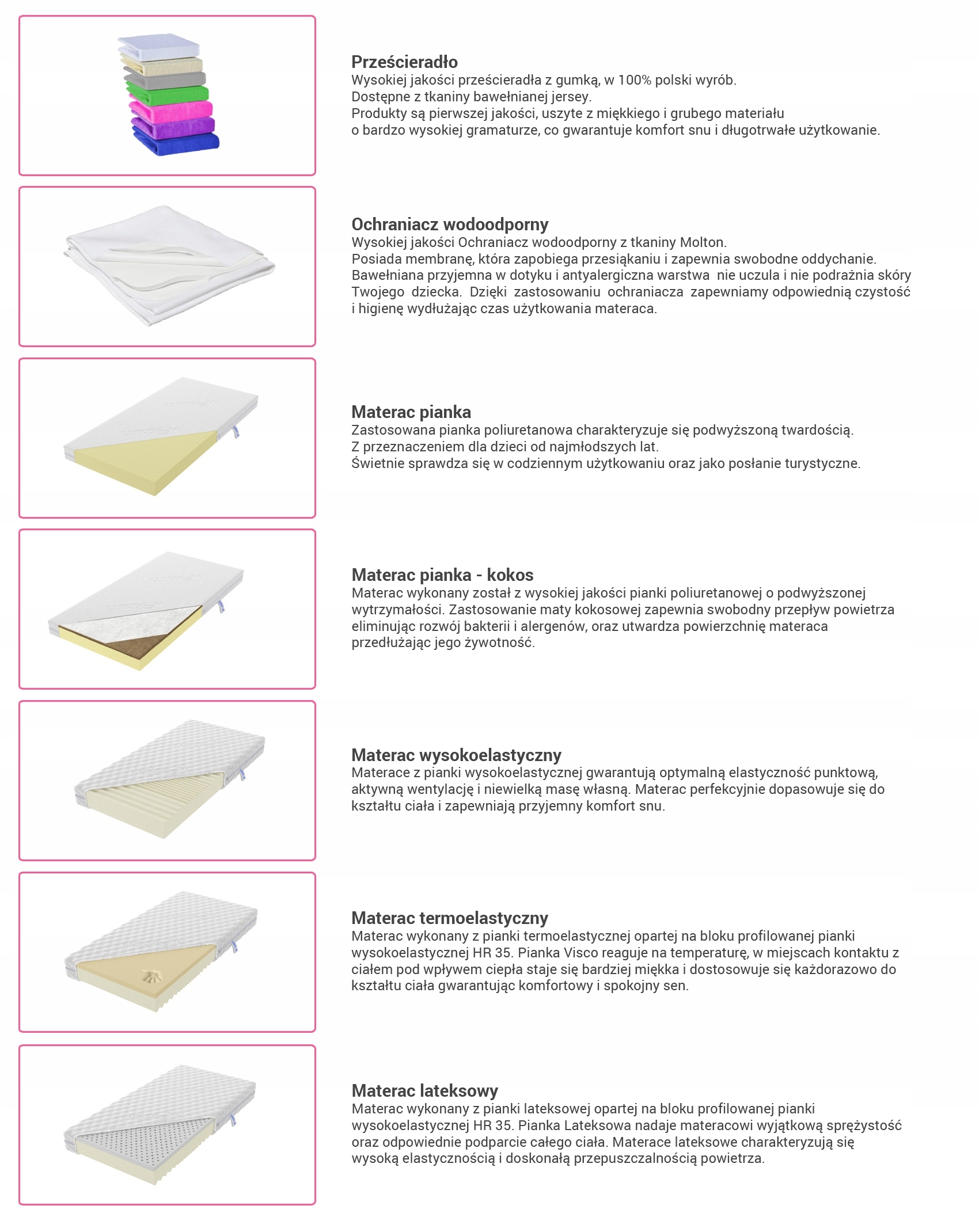 Zastosowana pianka poliuretanowa charakteryzuje się podwyższoną twardością. Z przeznaczeniem dla dzieci od najmłodszych lat. Świetnie sprawdza się w codziennym użytkowaniu oraz jako posłanie turystyczne.