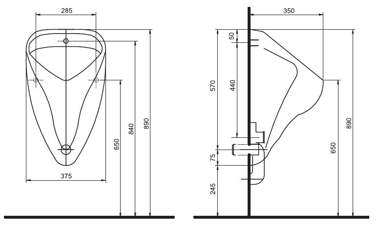 Automat spłukujący instalować nad pisuarem w minimalnej odległości 70 mm.