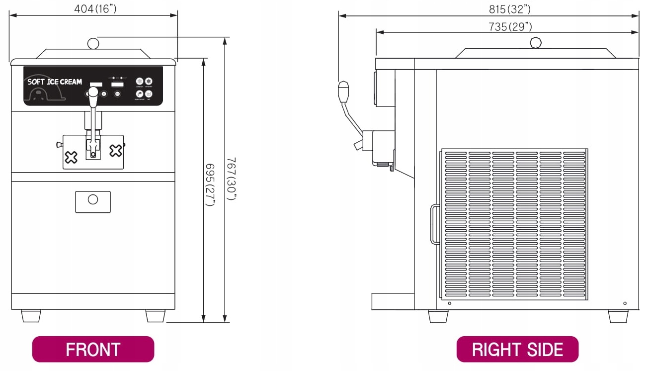 – Potężna zdolność produkcyjna 16kg/h, lody nawet po kilku minutach od włączenia maszyny – po 6-9 minutach można wydawać już pierwsze porcje.