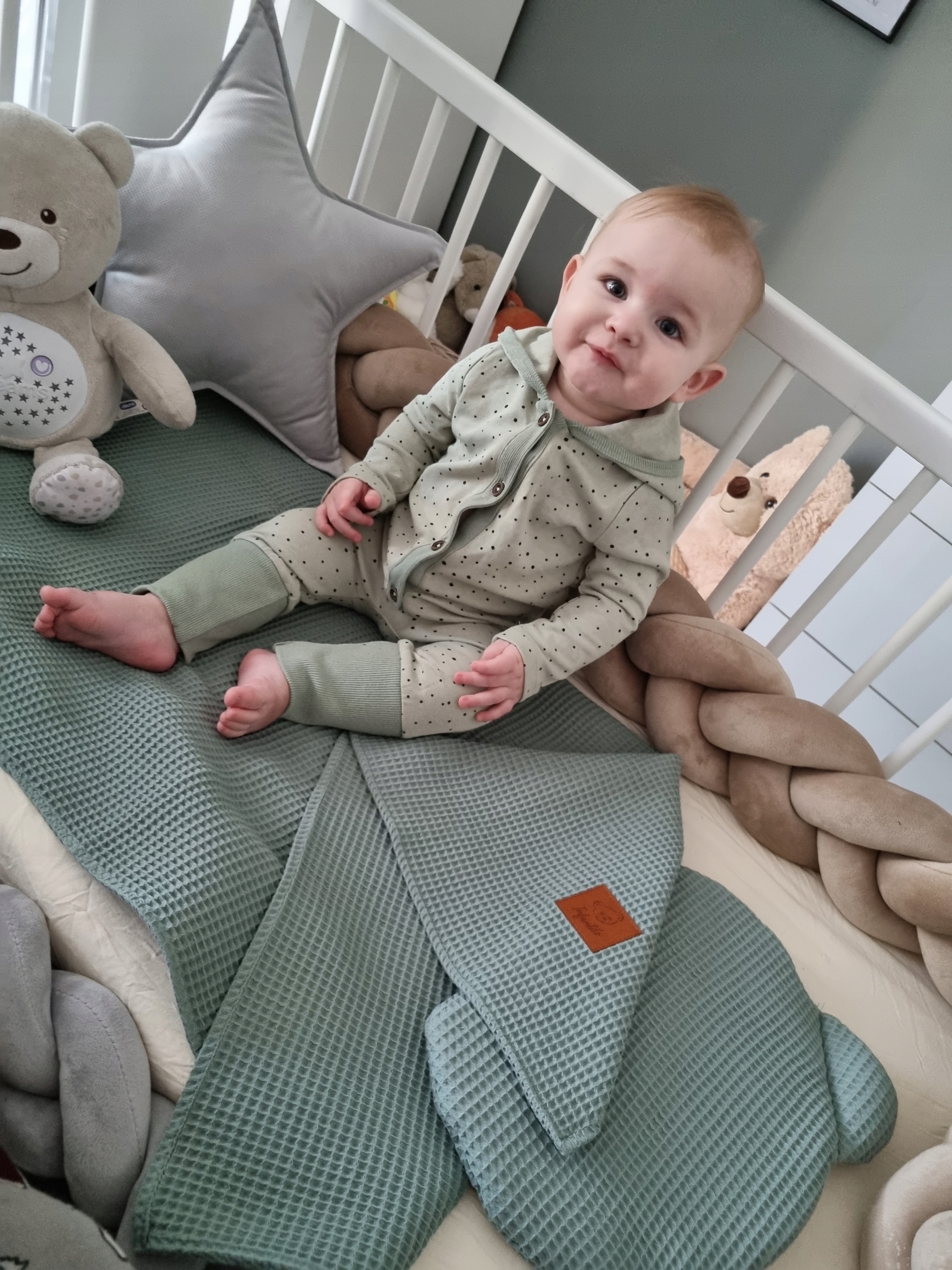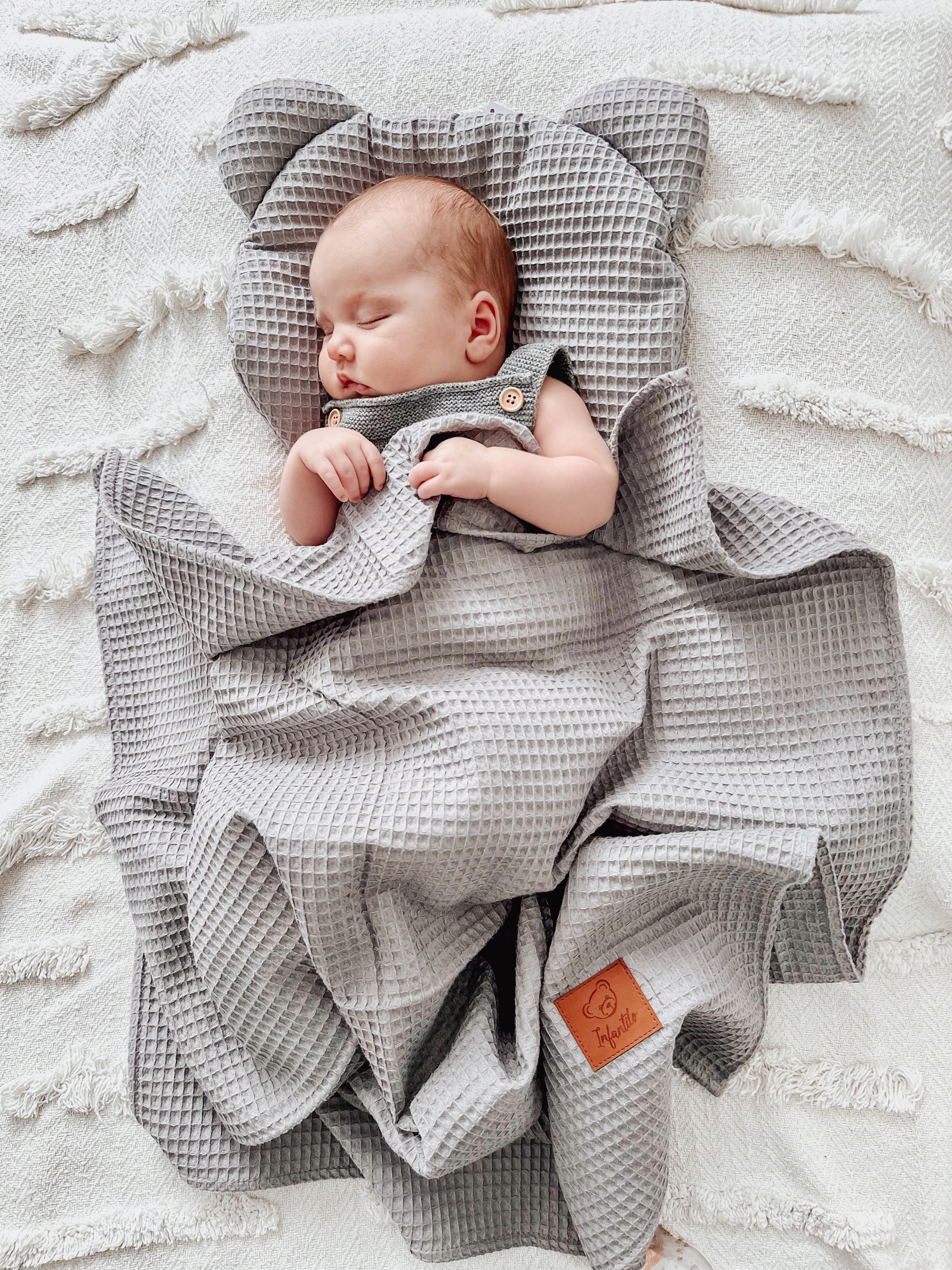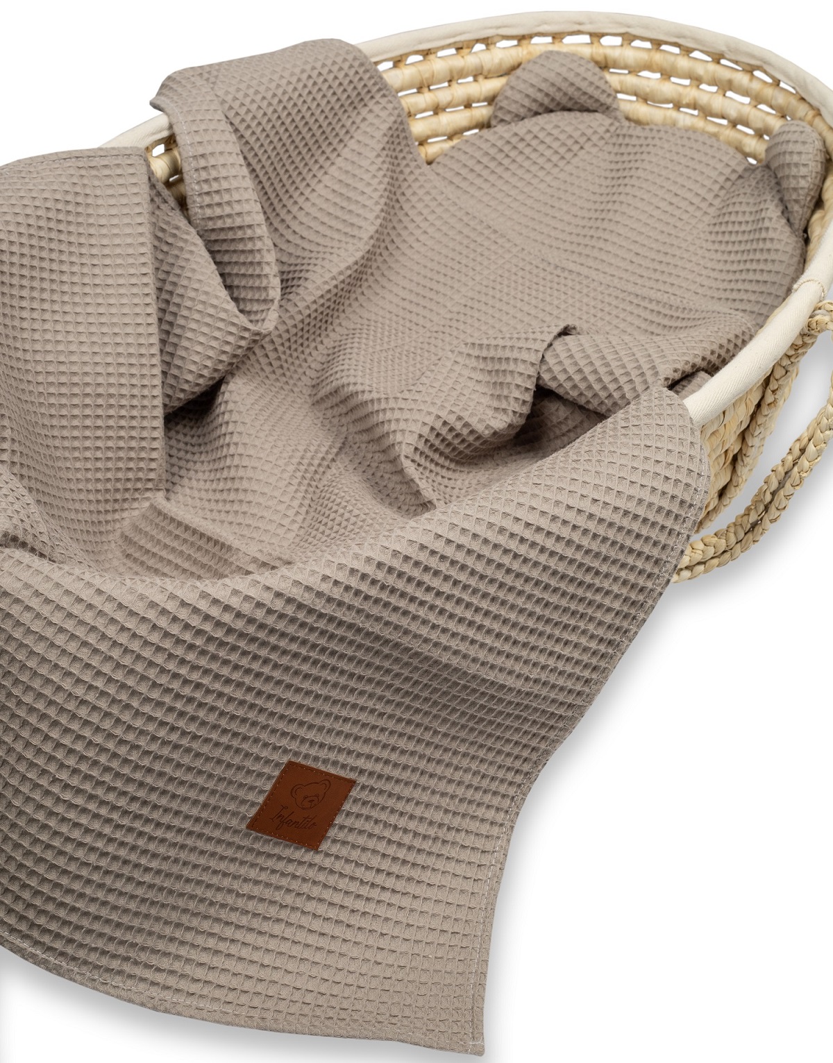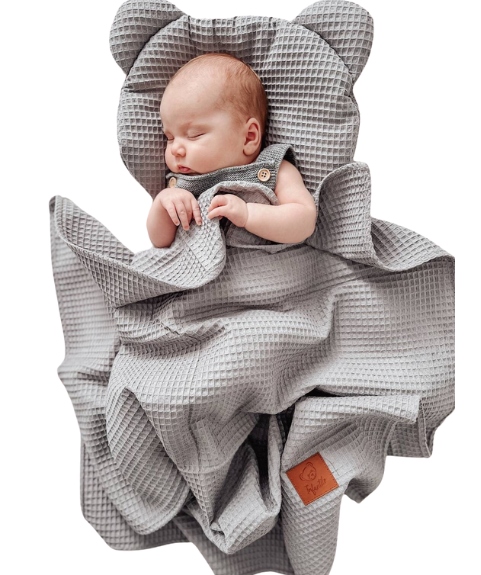 ➡️ Ciekawy splot bawełny powoduje, że komplet "WAFFLE" pełni również funkcję ozdobną pokoiku oraz wózka dziecięcego.