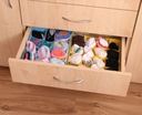 Pojemniki z przegródkami przeznaczone są na bieliznę, skarpetki, krawaty, paski, biustonosze. Dzięki nim w Twojej szufladzie będzie zawsze gościł porządek!
