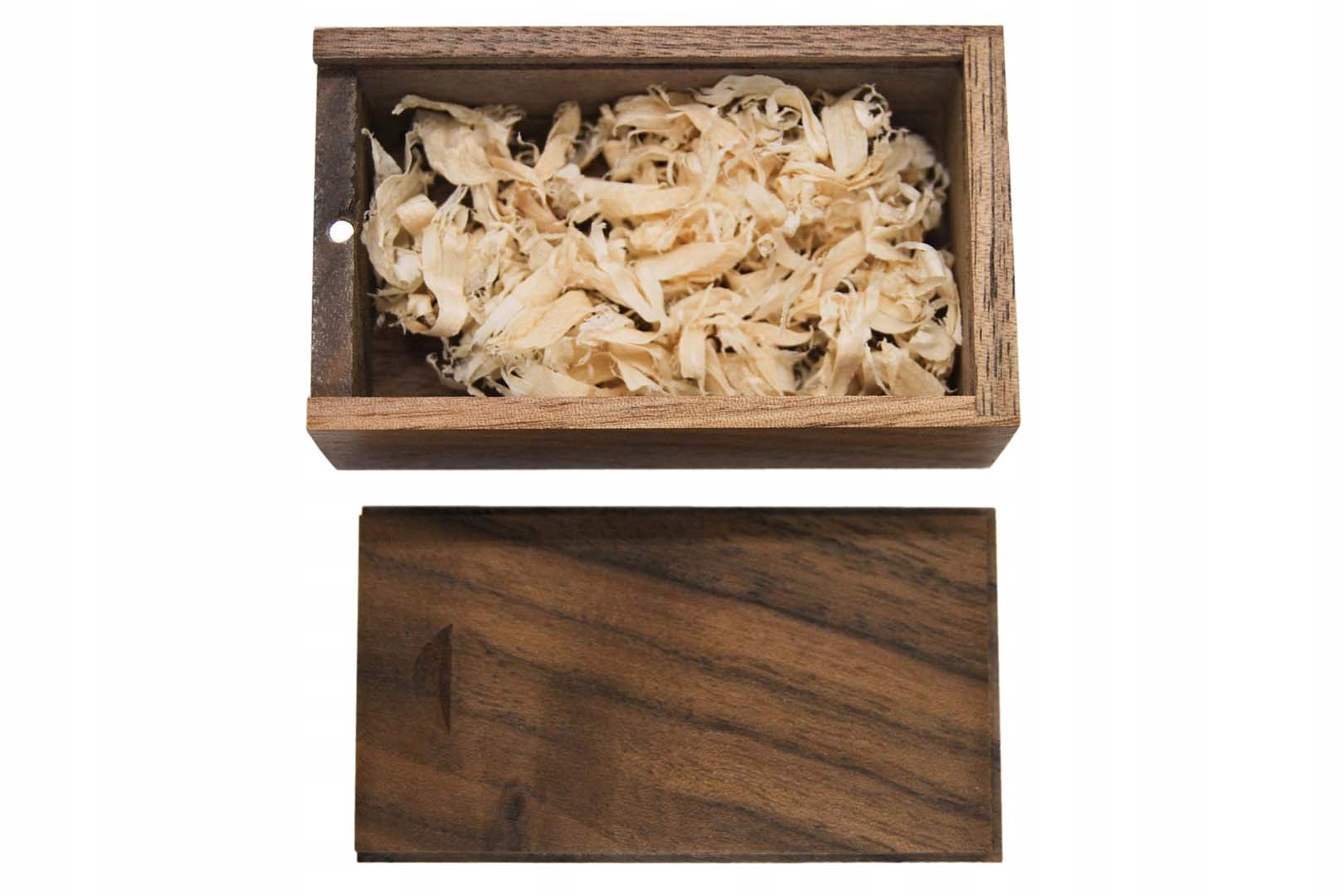 Wypełnienie pudełka trocinami zabezpiecza znajdujący się w nim pendrive przed uszkodzeniami mechanicznymi i amortyzuje wstrząsy.