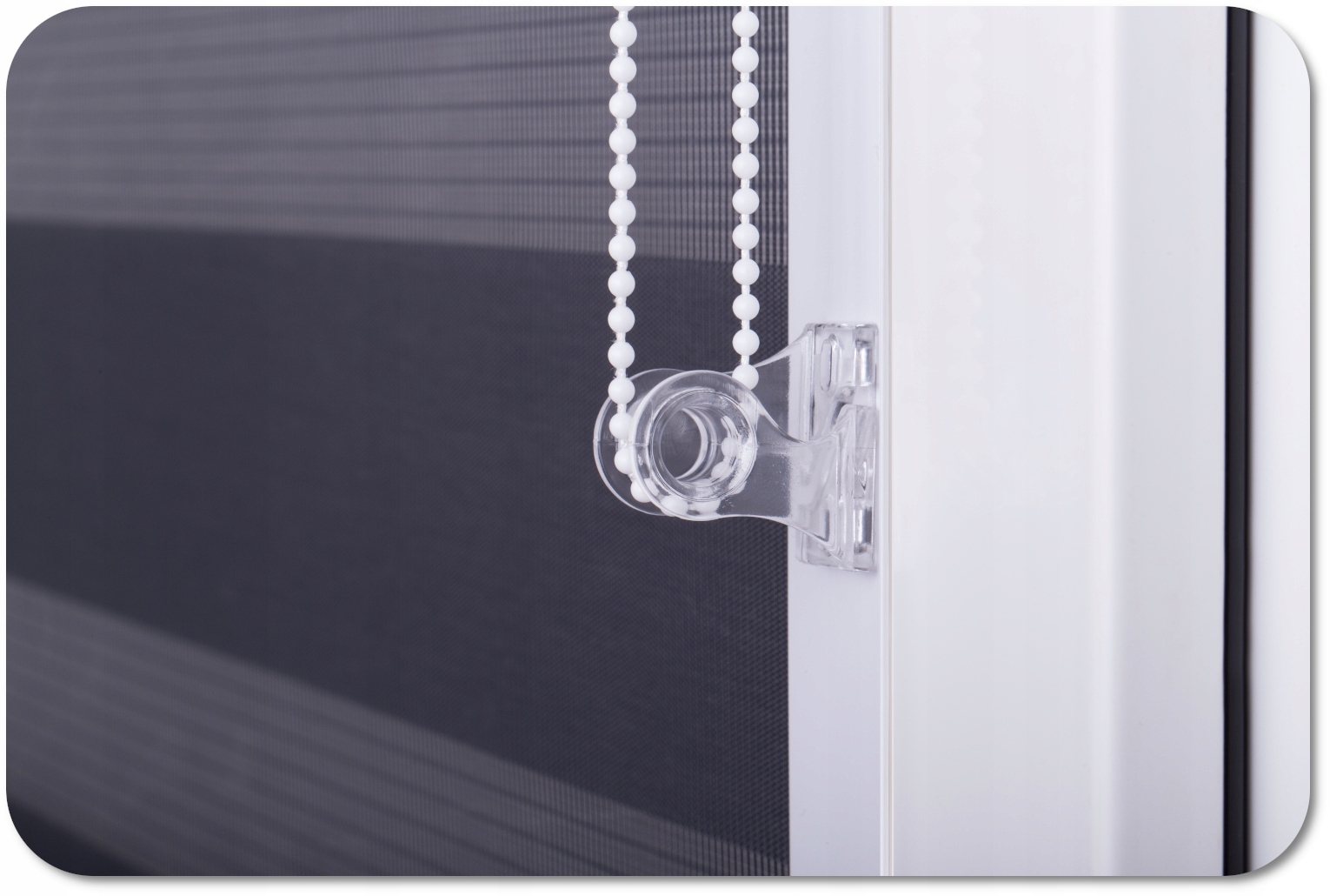 Цепочка висит прямо у оконной рамы. Значительно улучшает комфорт использование жалюзи. Благодаря ему жалюзи выглядят более элегантно и безопасны для дети.