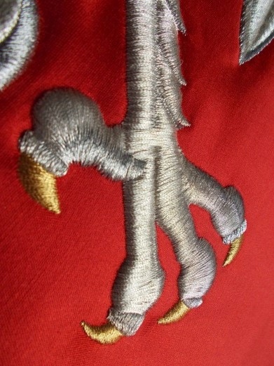 Haft wykonywany jest maszynowo. Wzór jest bardzo staranny i oddaje najdrobniejsze szczegóły. Dzięki bardzo gęstemu splotowi wzór orła jest trójwymiarowy, co nadaje mu szczególnego charakteru.