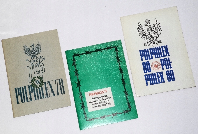 "Polfilex". 12 katalogów wystaw Związku Filatelistów Polskich w Wielkiej Brytanii (Union of Polish Philatelists in. G. Britain) z lat 1970-1984. Londyn. Objętość zeszytów ca 20-30 s., ilustracje. Okładki wydawnicze karton. Ładnie zachowane egzemplarze. W trzech zeszytach są odręczne dedykacje Mariana Brzezickiego, prawnika i numizmatyka (1908-2002, Londyn): zeszyty z 1973, 1974 i 1976 roku