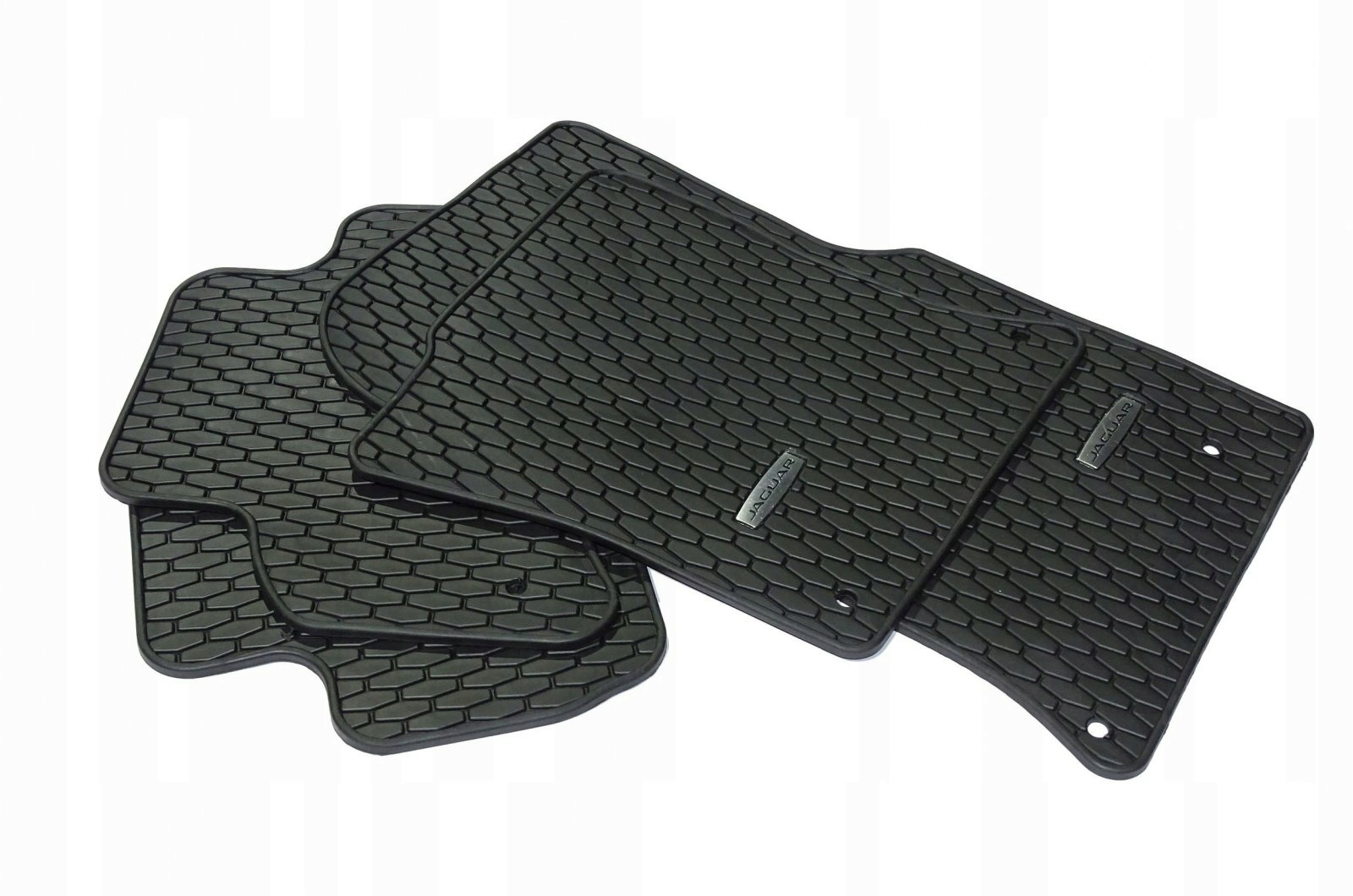 fabrycznie nowy komplet 4 sztuk dywaników gumowych z aluminiowymi emblematami JAGUAR w przedniej parze