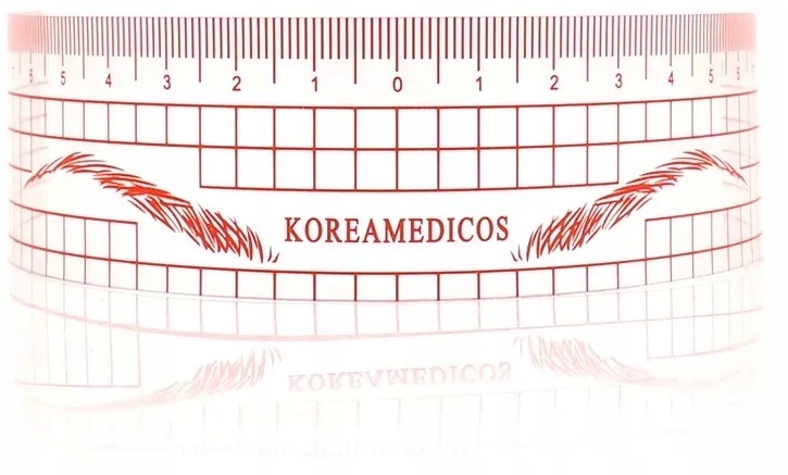 Miarka do makijażu permanentnego. Idealnie pomaga w wyznaczaniu perfekcyjnie symetrycznych łuków brwiowych przy zabiegu rekonstrukcji brwi, microbladingu oraz makijażu permanentnym.