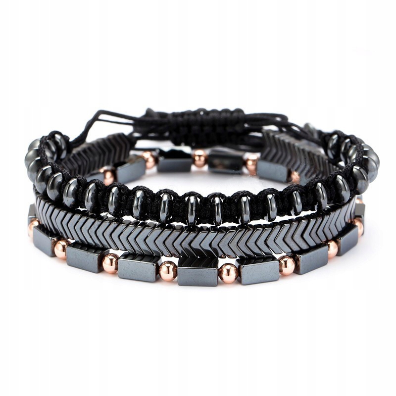 KOMPLET BRANSOLETEK 3W1 Z KORALIKÓW NA ROZCIĄGLIWEJ JUBILERSKIEJ ŻYŁCE WYKONANYCH Z HEMATYTU
