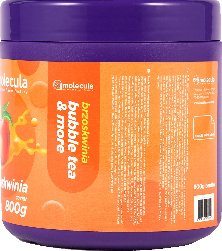 Molekularny kawior to małe kuleczki wypełnione syropem owocowym, które po przegryzieniu delikatnej osłonki jadalnej wypełniają twoje usta wspaniałym smakiem. Produkt znany jest szerzej jako kulki do Bubble Tea, niezwykle popularnego napoju stanowiącego absolutny hit każdej galerii handlowej czy punktu gastronomicznego.
