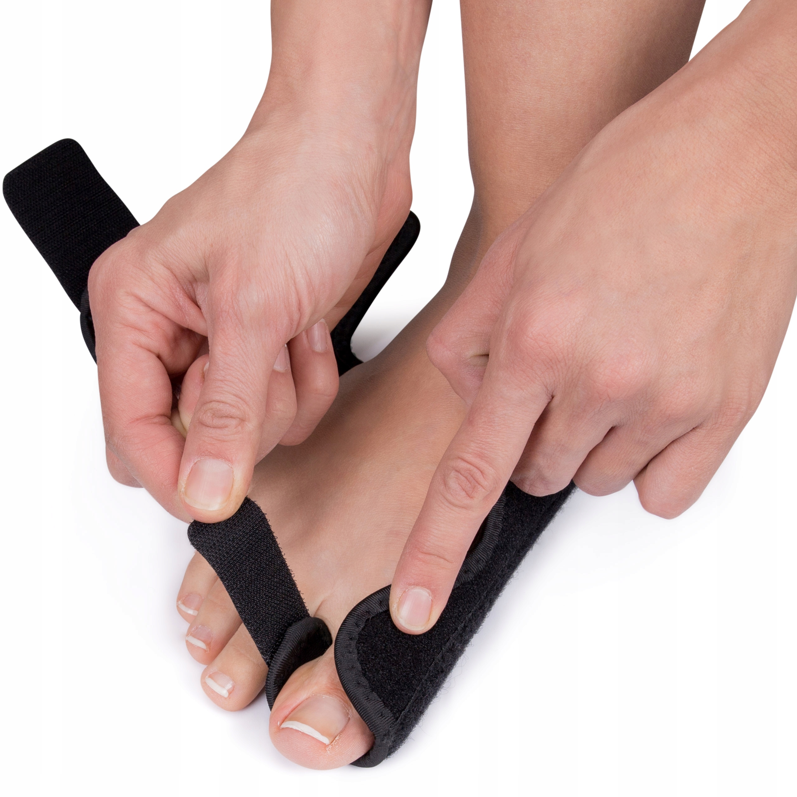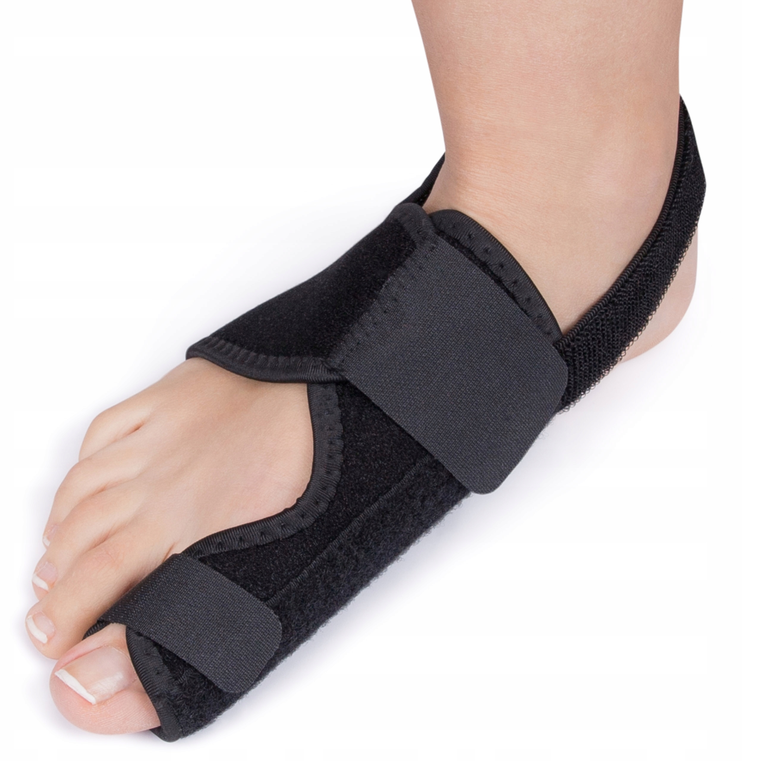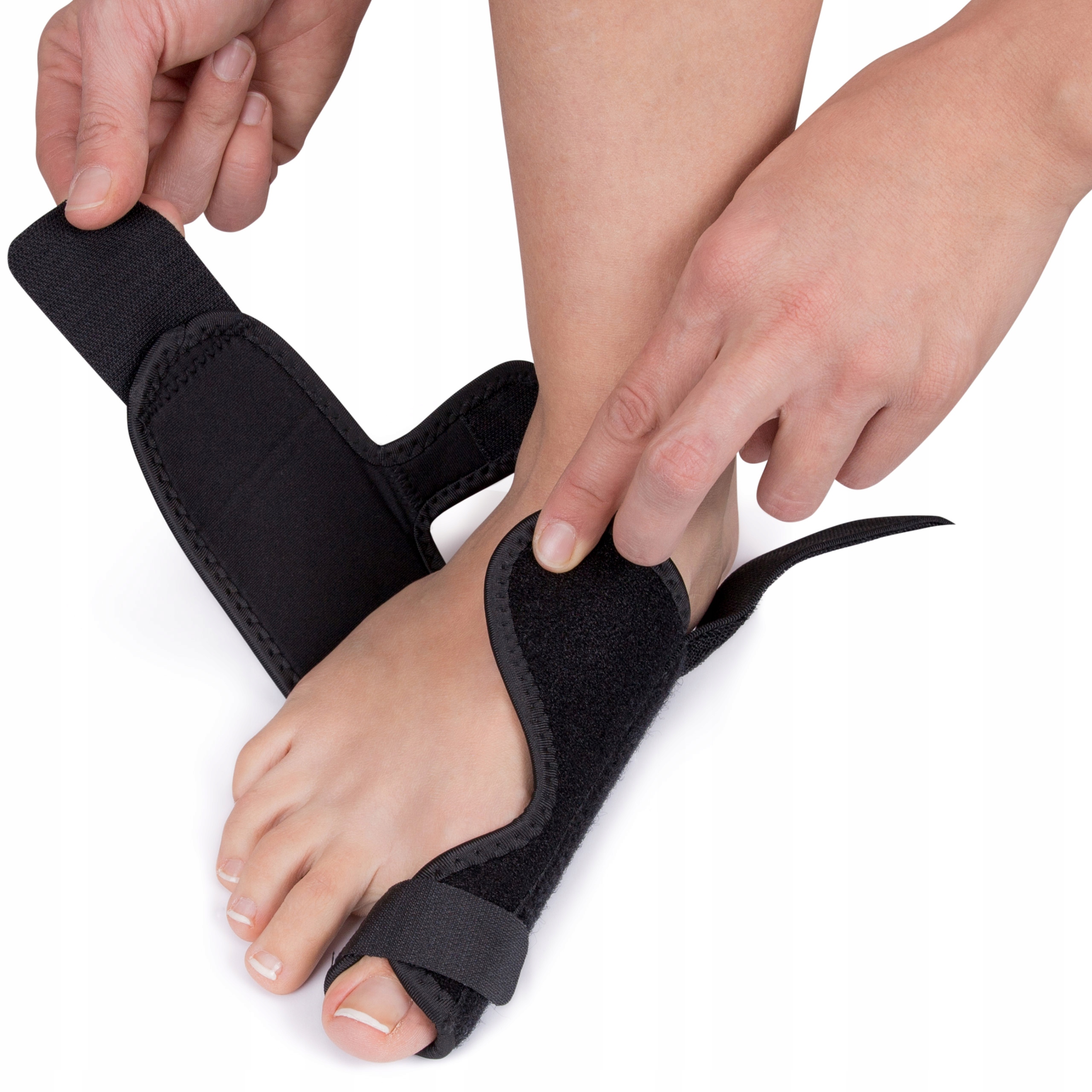 Opaska stabilizująca stopę pomaga w przywróceniu prawidłowego ułożenia dużego palca stopy. Zaszyta wewnątrz opaski metalowa szyna zapobiega odchylaniu się dużego palca ku zewnętrznej części stopy.