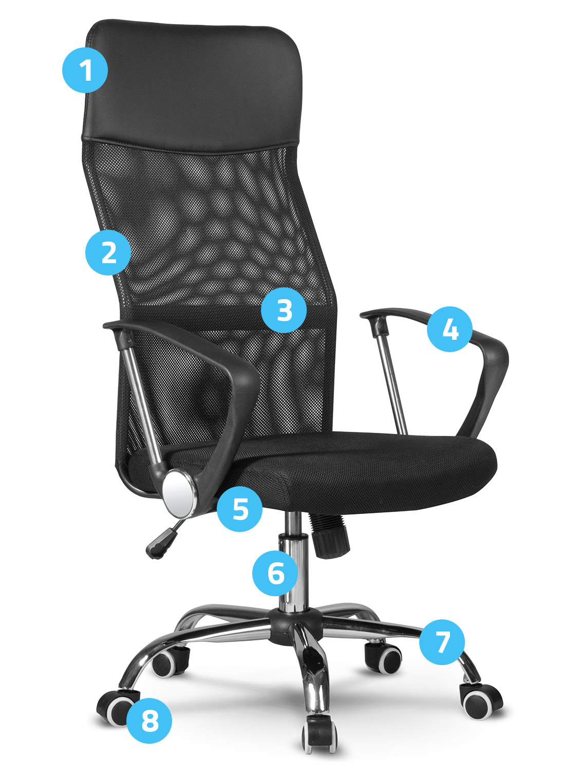 Сиднейское кресло имеет возможность регулировки высоты сиденья. Эргономичный, приподнятая спинка с характерным подголовником адаптируется к анатомическим потребности пользователя.