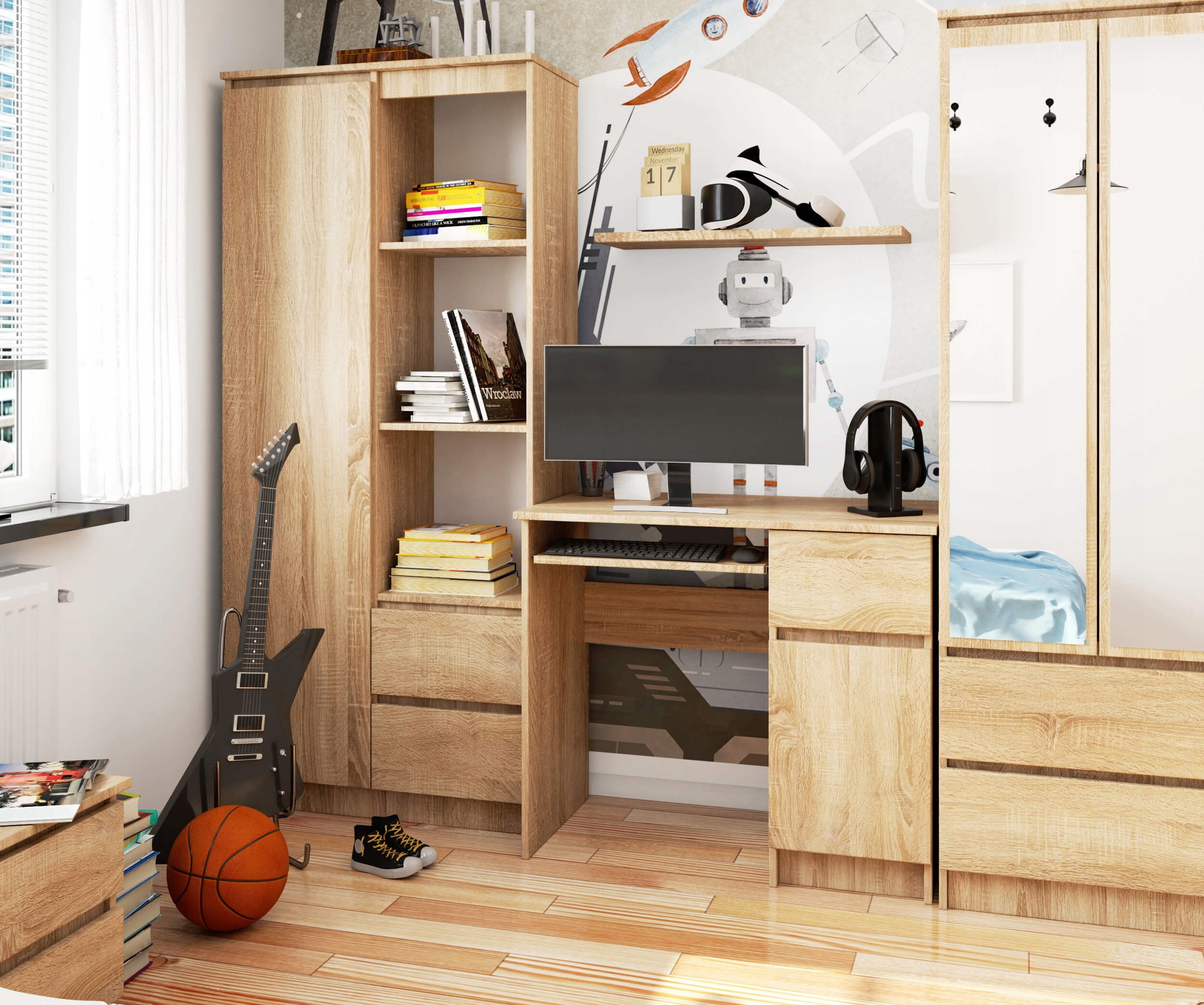 ➡️ Biurko może również stanowić element większego zestawu naszych mebli tworząc kompletne wyposażenie sypialni, salonu, biura lub pokoju dziecięcego.