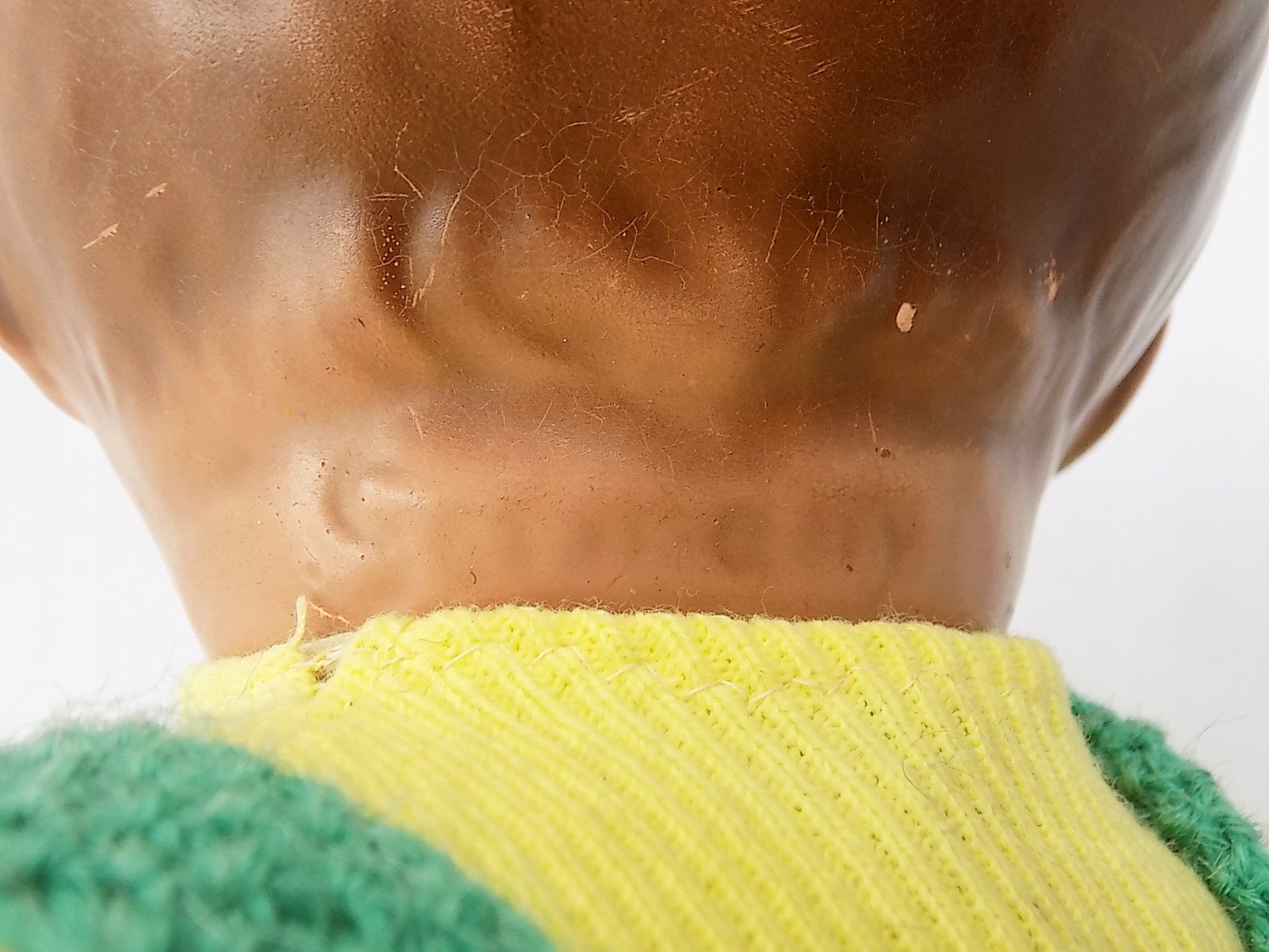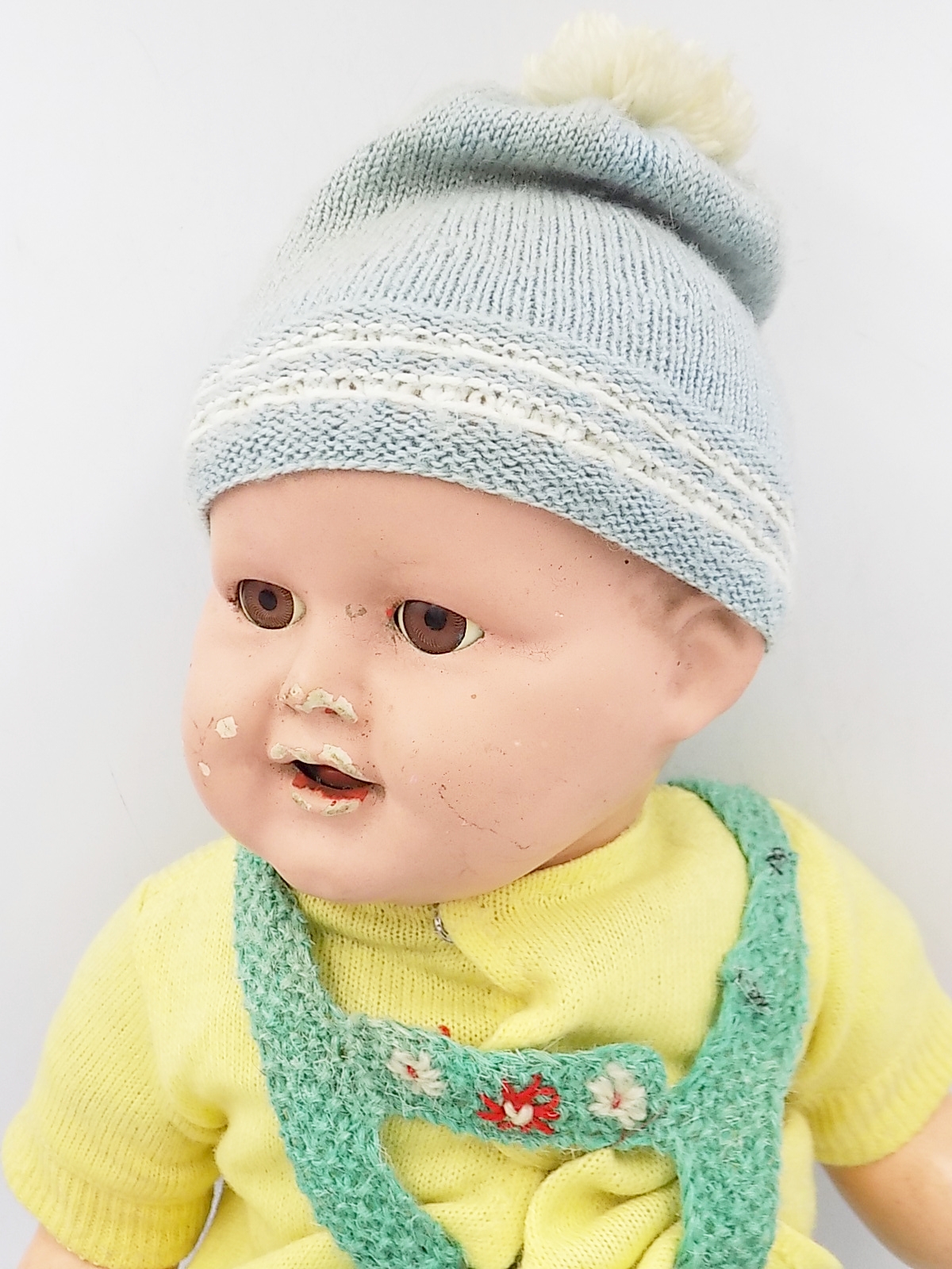 Старая целлулоидная кукла, вероятно, из Ипола.ХХ в. Недостатки, показанные на фотографиях. Размеры; выс.54 см.