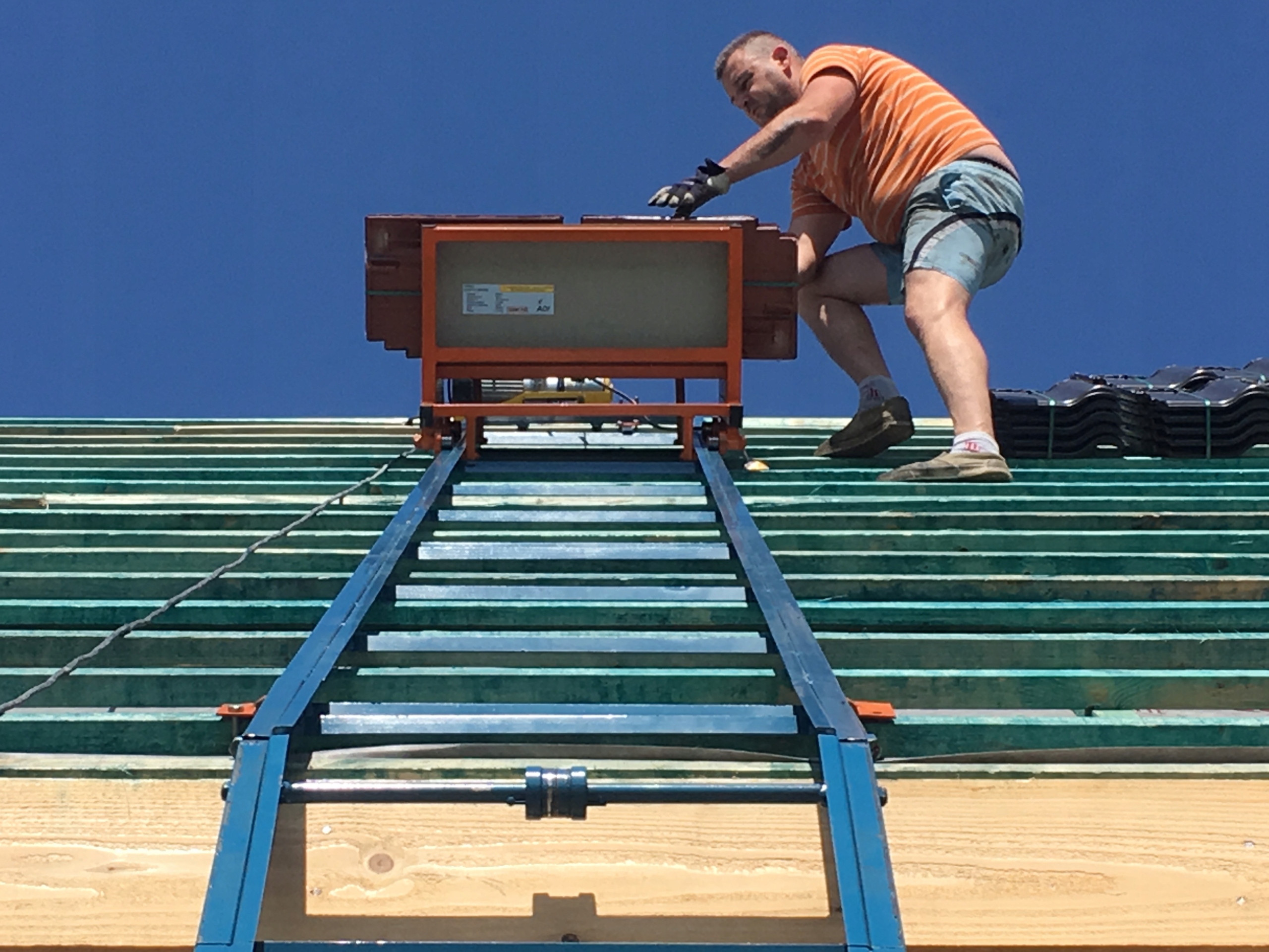 Оборудование является сенсационным для кровельщиков или каменщиков и монтажников солнечные и фотоэлектрические. Транспортировка материалов на крышу, пол или потолок быстро и без каких-либо усилий. Раскладывать или складывать подъемник - 2 минуты-скручивание не требуется! (элементы должны поворот на пролете более 8 м). Благодаря хорошо продуманной конструкции элементы прочный, но легкий (14 кг весит самый длинный элемент), вес близок к элементам алюминиевые лифты. Лифт можно перевезти даже в легковом автомобиле.