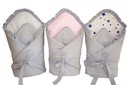 Wielofunkcyjne rożki niemowlęce wykonane z tkaniny bawełnianej i włókniny puszystej posiadające atest PZH i certyfikat bezpieczny dla dziecka.