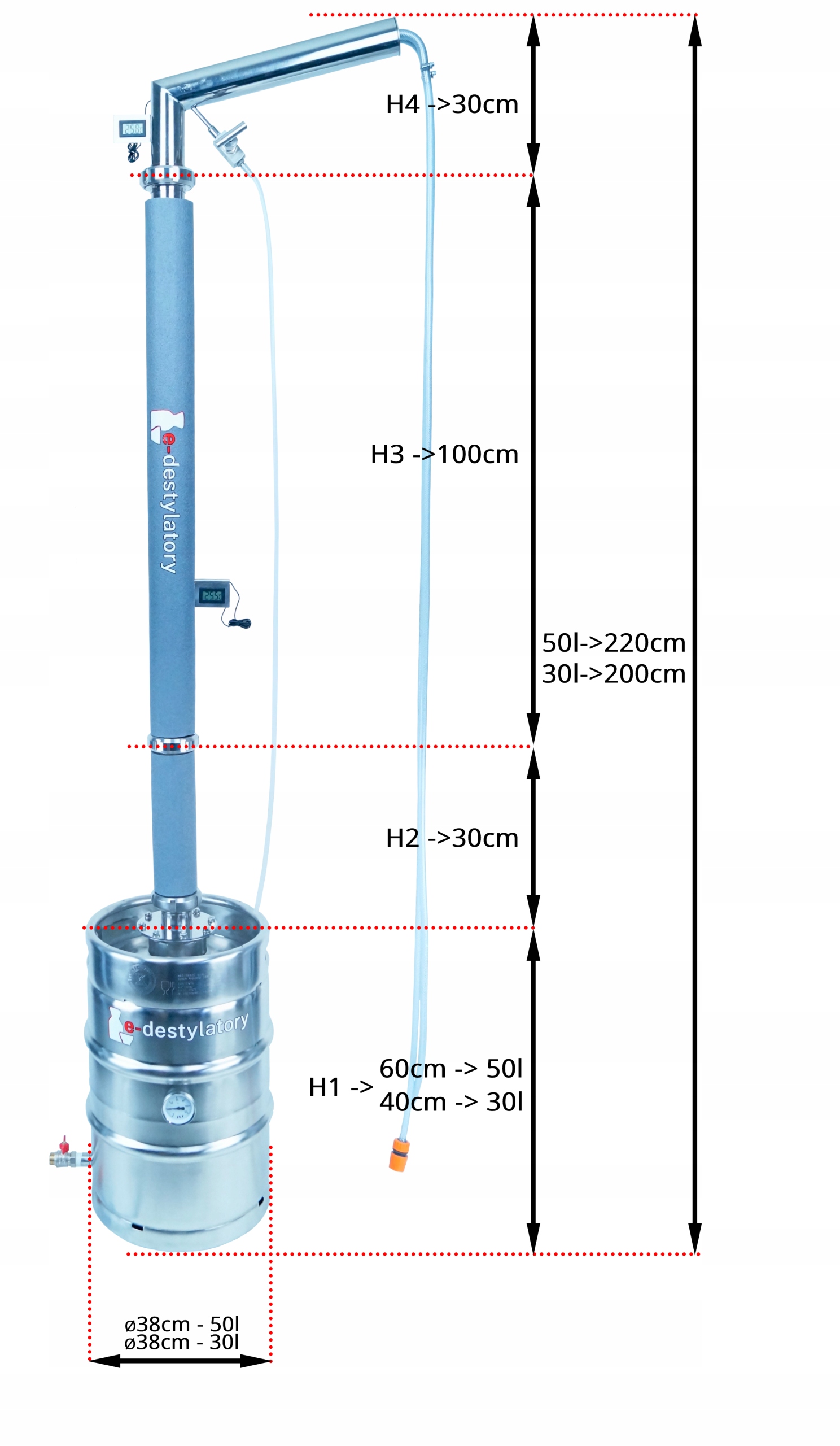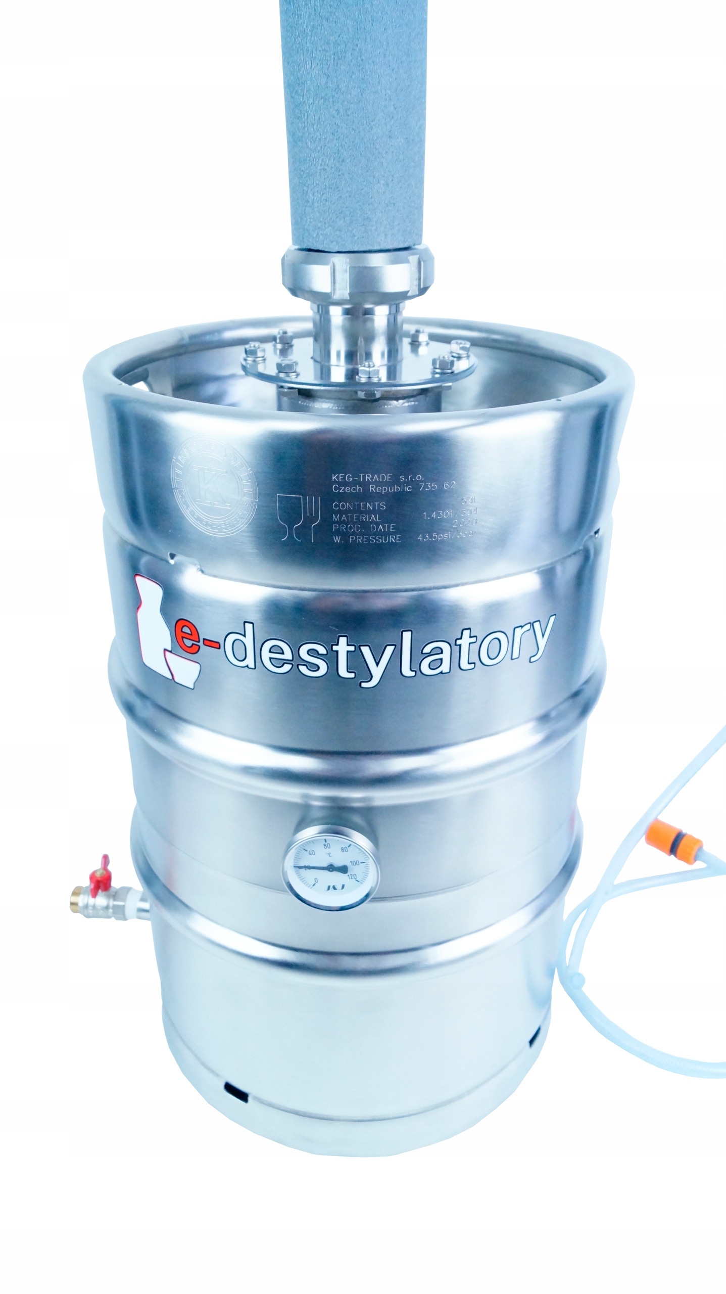 DESTYLATOR GAZOWY Z KOLUMNĄ TYPU AABRATEK WYSOKOŚĆ ZESTAWU Z KEGIEM 50L 220 CM Z KEGIEM 30L 200 CM . TYLKO U NAS KOLUMNA W KOMPLECIE Z KATALIZATOREM MIEDZIANYM W POSTACI SPRĘŻYNEK MIEDZIANYCH 0,5L ORAZ WYPEŁNIENIEM NIERDZEWNYM W POSTACI 12 DRUCIAKÓW NIERDZEWNYCH TWORZĄCYCH TEORETYCZNE PÓŁKI DESTYLACJI .