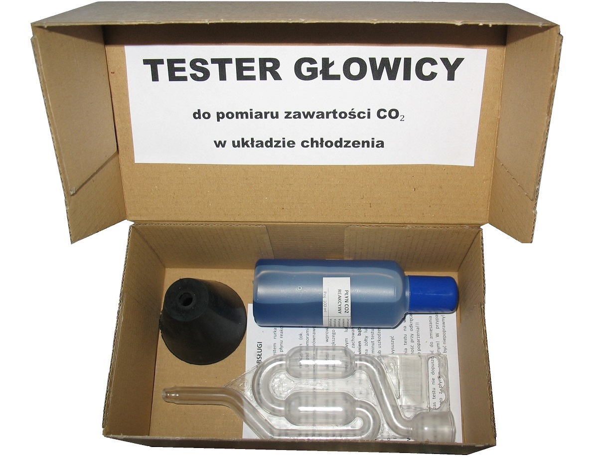 Тестер которые мы используем для обнаружения повреждений прокладки головки блока и головки цилиндров в двигателях внутреннего сгорания (бензин, дизель, сжиженный нефтяной газ) с жидкостным охлаждением. Тестер имеет тот же принцип действия, как тестеры по 250-500 zł, предлагаемые на Сайте.