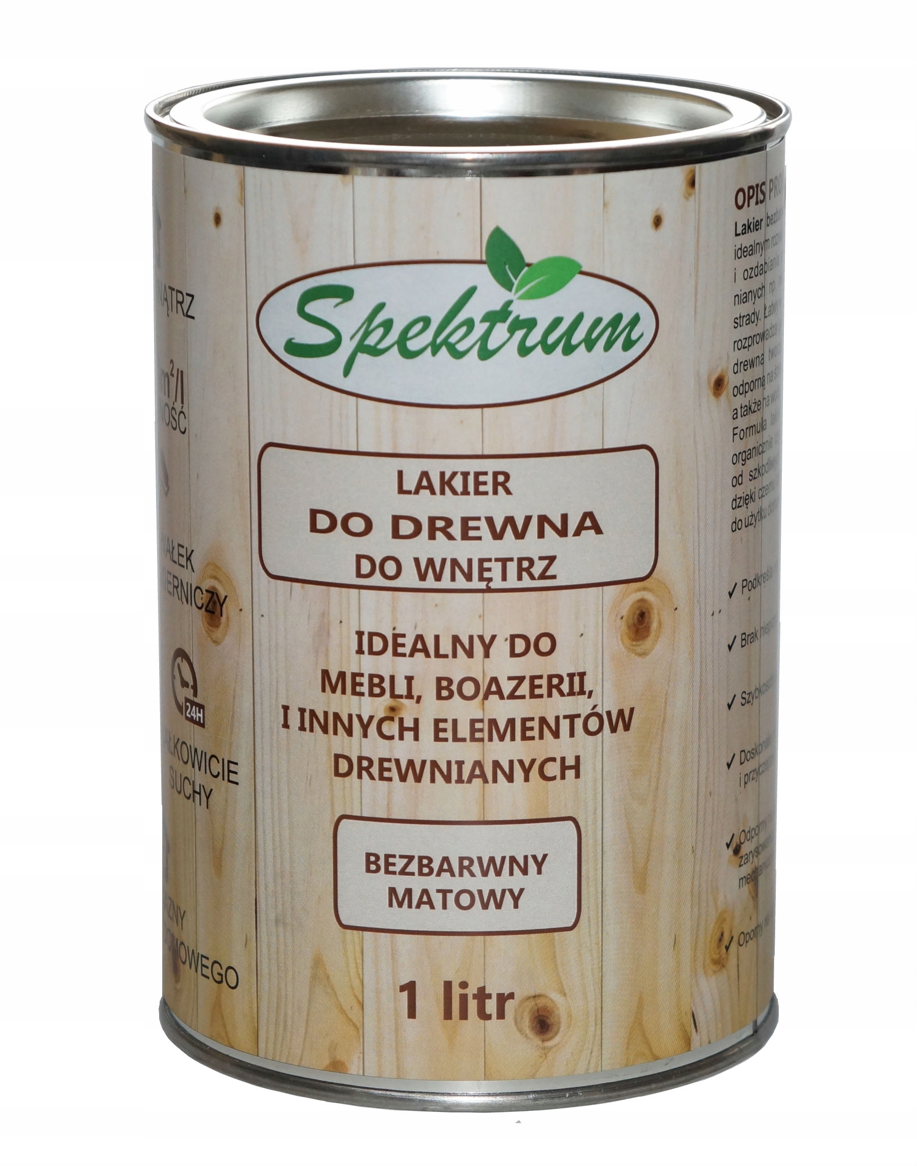 Бесцветный лак спектра является идеальным решением для защиты и украшения поверхностей деревянные, например, мебель, панели, перила. Прост в использовании, хорошо распределяется и глубоко проникает в древесные поры формируют прочное покрытие, устойчивое к истиранию и царапинам, а также к воды.