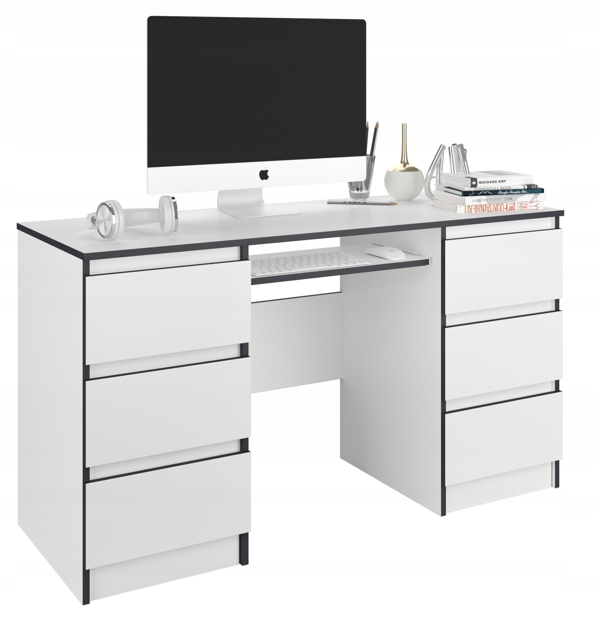 Stylowe biurko z kolekcji MODERN, stworzony dla ludzi, którzy cenią sobie nowoczesny styl i elegancję. Odnowi wnętrze każdej pracowni, biura czy pokoju młodzieżowego. Konstrukcja jest minimalistyczna, ale solidna i trwała. Ergonomiczne wymiary zapewniają swobodne umeblowanie pomieszczenia.