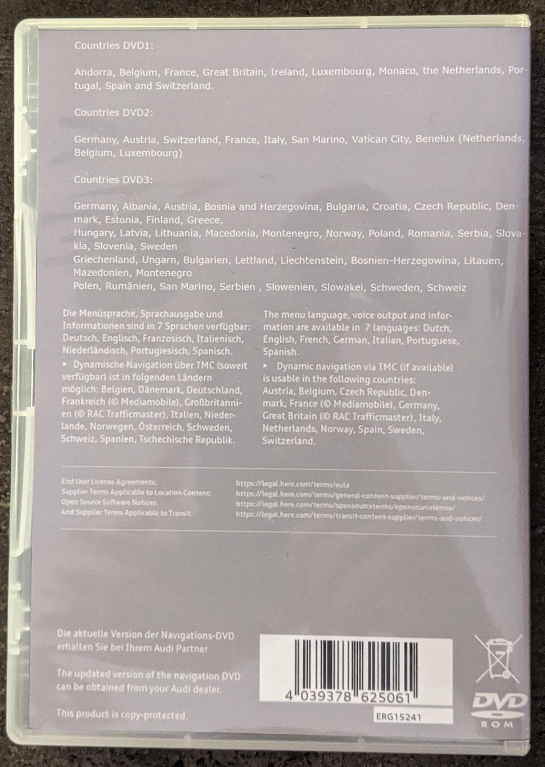 Nawigacje AUDI RNS-E można poznać po odchylanym ekranie z wejściem na dwie karty SD i jednym wejściem na płyty.