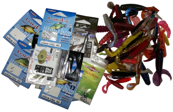 К каждой купленной оплетке добавляем бесплатно: пакет качественных крючков и набор из 3 приманки резиновые (twister, ripper).