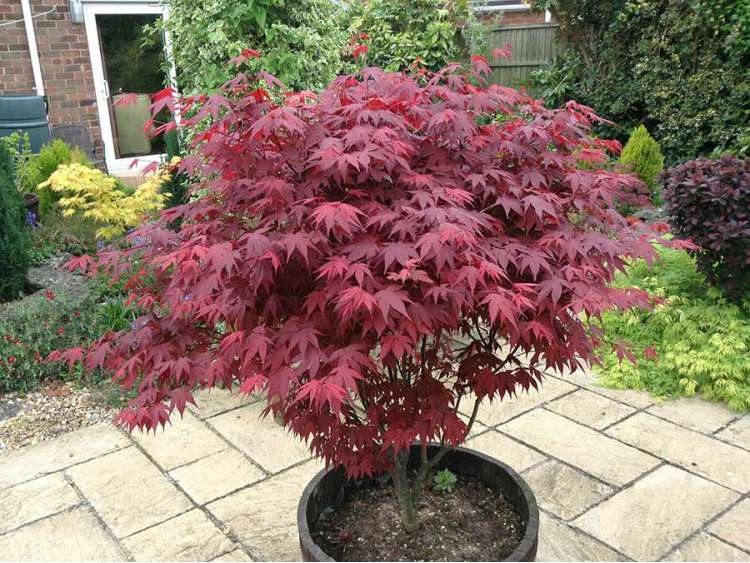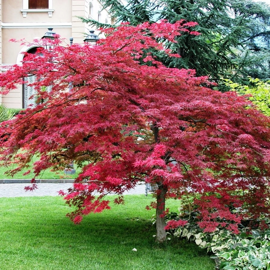 Один из самых красивых клены мира, из-за красивой красно-фиолетовой окраски листьев, сохраняющихся на дереве в течение всего сезона. Этот вид образует небольшие живописные деревья, часто гармонично раскидистые короне. Он растет до 2-3 метров, поэтому он также подходит для небольших садов. С весны до конца лета листья пурпурно-красные. Осенью они окрашиваются в цвета пылающего красного. Может быть посаженный как в контейнерах, так и в грунте, он служит прекрасным фоном для других растений, может быть элемент интересных композиций или эффектный одиночка на фоне газона (так называемый солитер), пальмовый клен также подходит для изготовления миниатюрных деревьев бонсай легко формируется и он любит обрезку (обрезка заставляет растение сгущаться и расти быстрее). Этот вид хорошо растет как в солнечных, так и в тенистых местах. Условием хорошего развития является обеспечение достаточно плодородной, слегка кислой и влажной почвы. Морозостойкий, но лучше закрепить на зимой в более молодом возрасте.