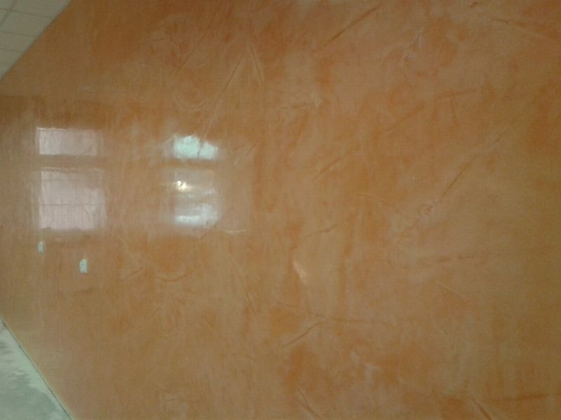Krok 5 - nakładanie warstwy 3 - Warstwę trzecią nakładać innym wybranym kolorem. Wprasować masę, by uzyskać gładkość powierzchni, odczekać ok. 5-15min jak struktura lekko podeschnie należy ją wprasować (pacą ze stali nierdzewnej) kilkukrotnie, aby uzyskać oczekiwane wzory lub „cętki” wzorów. Jeśli efekt jest mało wyraźny to należy powtórzyć wprasowanie po odczekaniu 15min, pozwoli to na uzyskanie gładkiej powierzchni i lepszego pogłębienia koloru, wzoru.