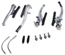 Описание: тормоза Promax V-brake, цвет алюминия серебро, в комплекте резинки, трубы и монтажные винты, комплект для двух колес, длина руки: 110 мм, вес: 395 г
