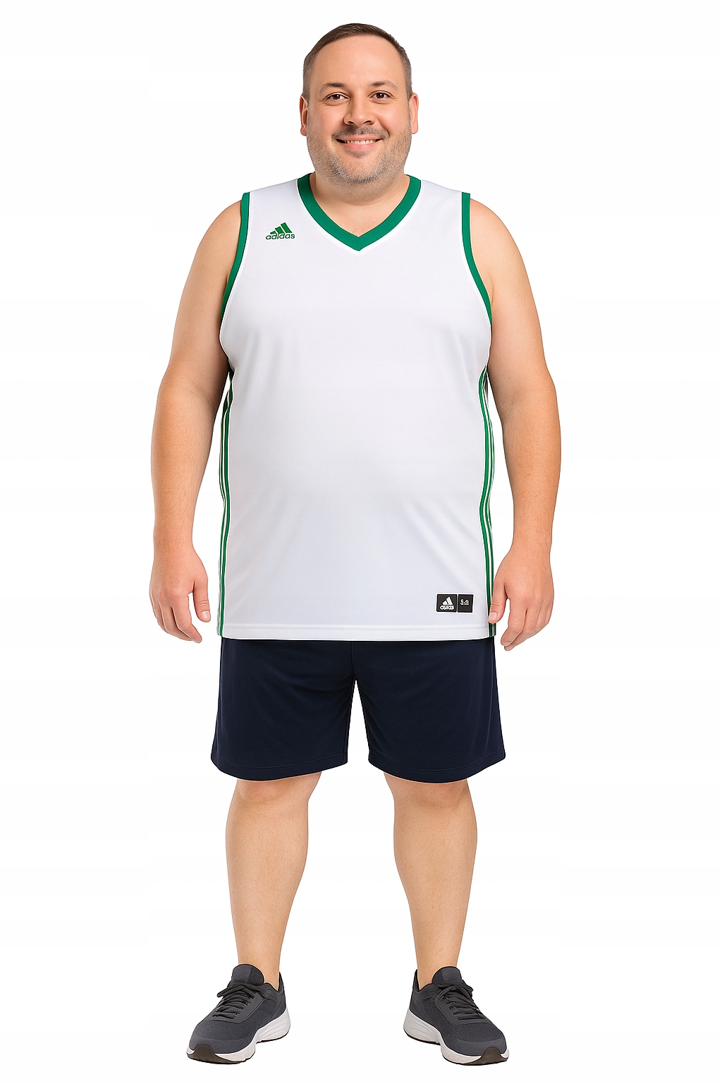 Koszulka stworzona z myślą o koszykarzach, doskonale nadaje się do każdej aktywności fizycznej. Wyróżnia się dwustronnym designem z siateczką i kontrastowymi trzema paskami po jednej stronie oraz mocną dzianiną o podwójnym splocie po drugiej. Model skonstruowany tak, aby zapewnić przepływ powietrza w każdym momencie, wykonany jest z materiału odprowadzającego wilgoć dla zapewnienia wyjątkowej wentylacji.