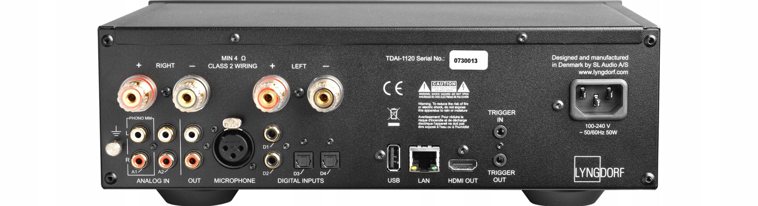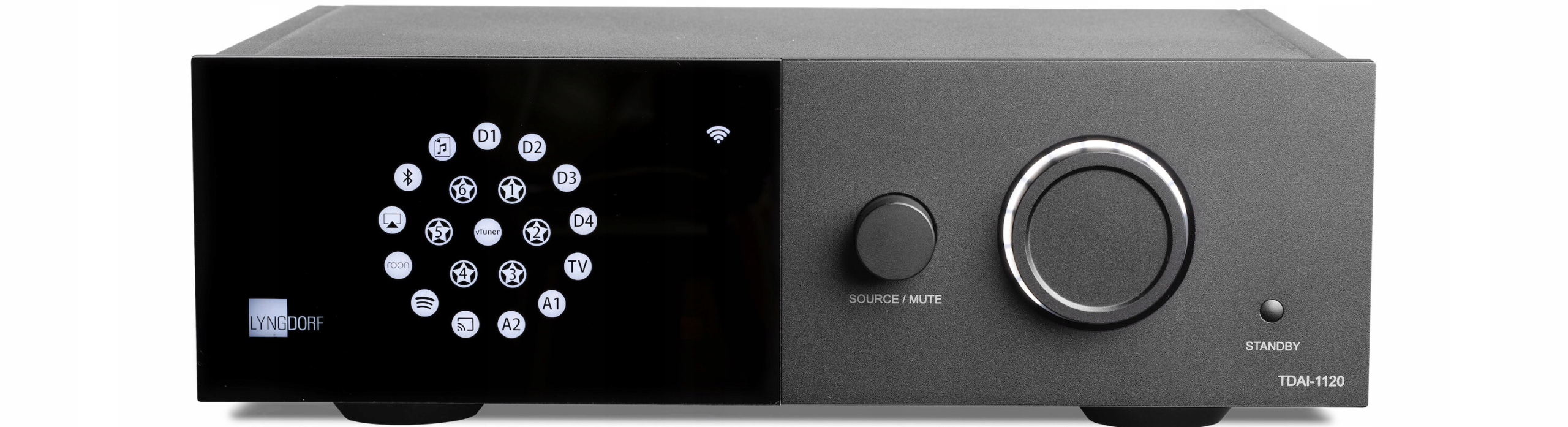 Lyngdorf TDAI-1120 - это полностью цифровой (класса-D) усилитель интегрированный в дизайн мощных, имеющий встроенную систему коррекции акустики помещения и RoomPerfect встроенный высококачественный сетевой плеер, он также может выполнять роль DACa, потому что он имеет в стандартной комплектации цифровые входы, а с помощью преобразователя ADC (обратное DAC) имеет также входы аналоговые.
