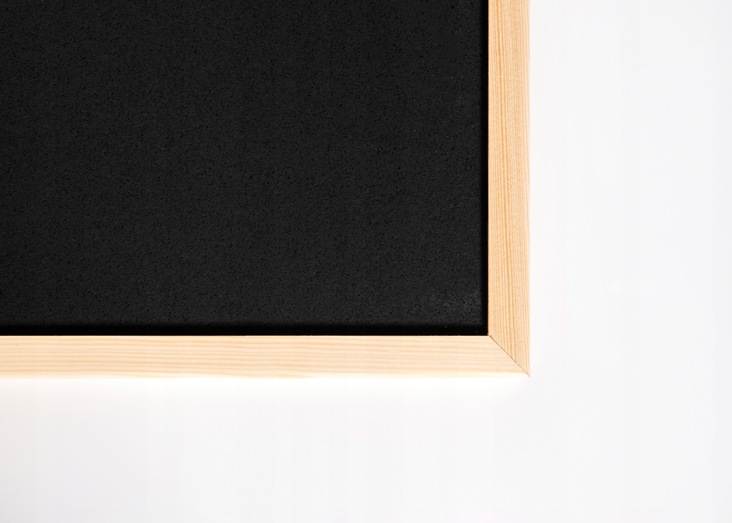 Rama tablicy korkowej wykonana z suchego drewna sosnowego, bez sęków, szlifowana czterostronnie, zaokrąglona w przedniej części, grubość min. 20x20 mm, daje to gwarancję stabilności nawet przy największych rozmiarach.