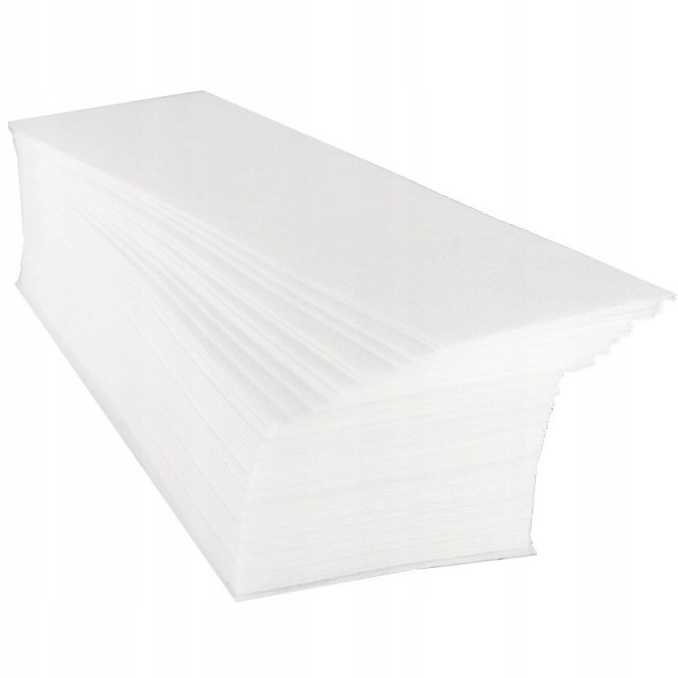 Paski do depilacji z włókniny pakowane w folię po 100 sztuk.