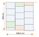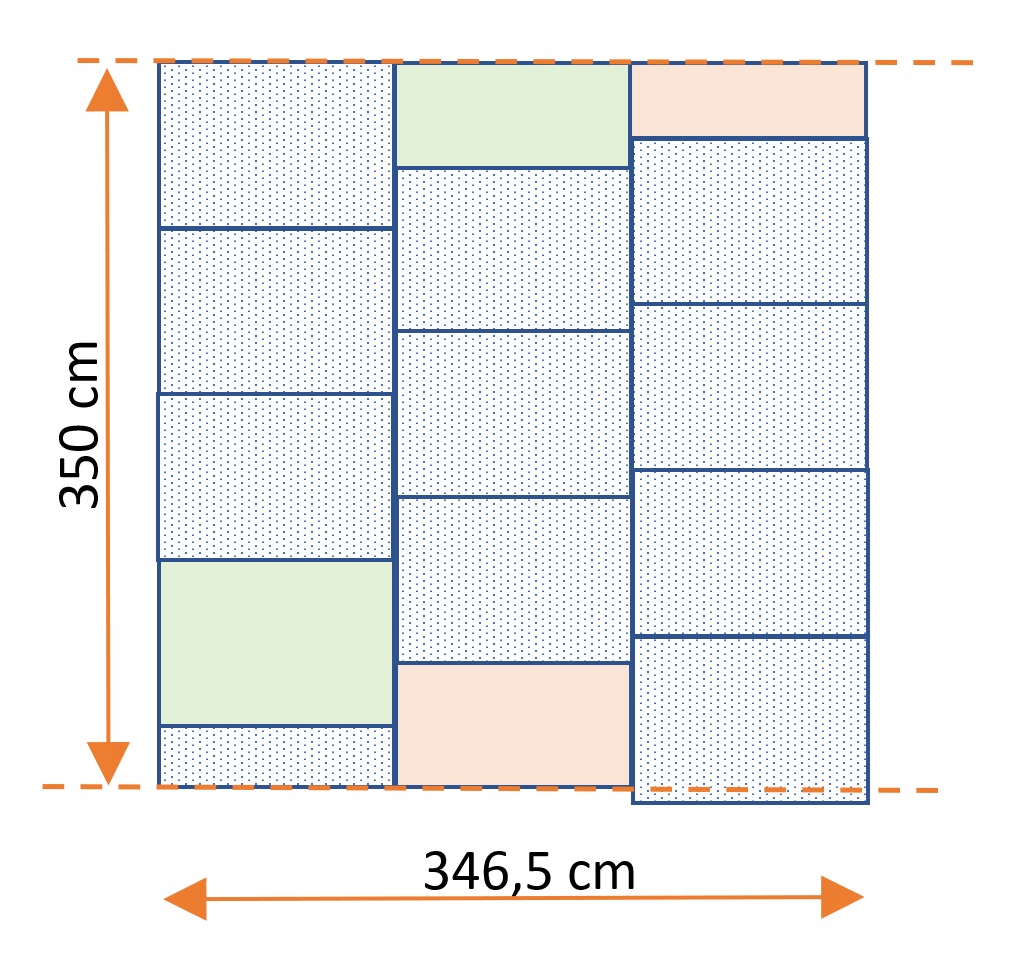 Przykładowo cztery spięte ze sobą maty będą miały długość 4 * 117,5 cm - 3 * 3 cm na zakładki = 461 cm. 3 spięte maty będą miały szerokość 3 * 84 cm - 2 * 3 cm = 246 cm.