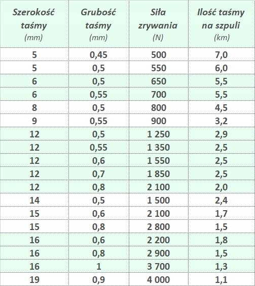 Dostarczane przez nas taśmy wyróżniają się między innymi następującymi cechami: