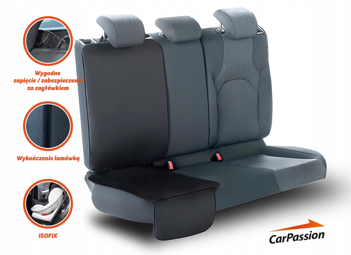 Ochronna mata pod fotelik samochodowy dla dziecka. Przygotowana przez polskiego producenta akcesoriów samochodowych CarPassion.