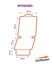 Uniwersalne wymiary. Pasuje praktycznie na każde siedzenie i do każdego fotelika. Mata po złożeniu ma niewielkie rozmiary