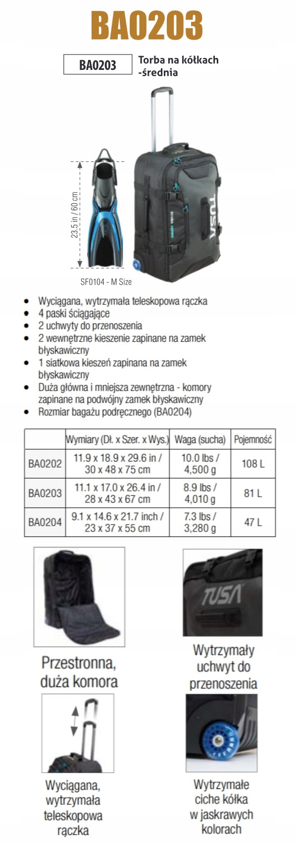 Torba nurkowa TUSA Roller Bag BA0203 Medium o wytrzymałej konstrukcji doskonale sprawdzi się w każdej podróży.