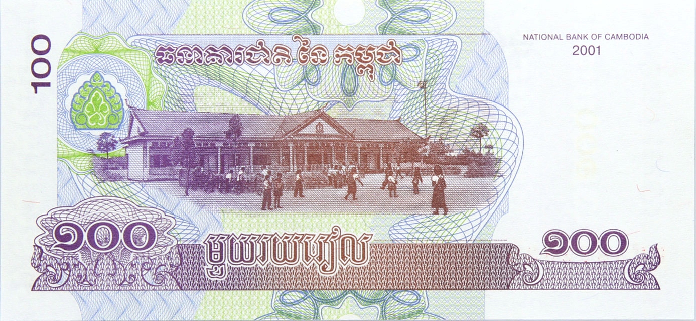 Kambodża - BANKNOT - 100 Riels Rieli 2001 - Stan UNC ! Numer i litery serii przykładowe. ORYGINAŁ!