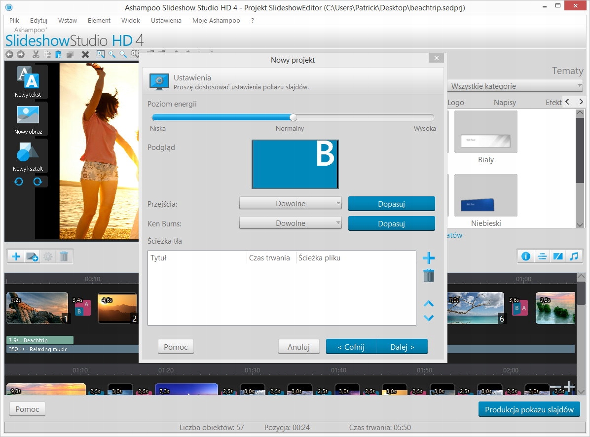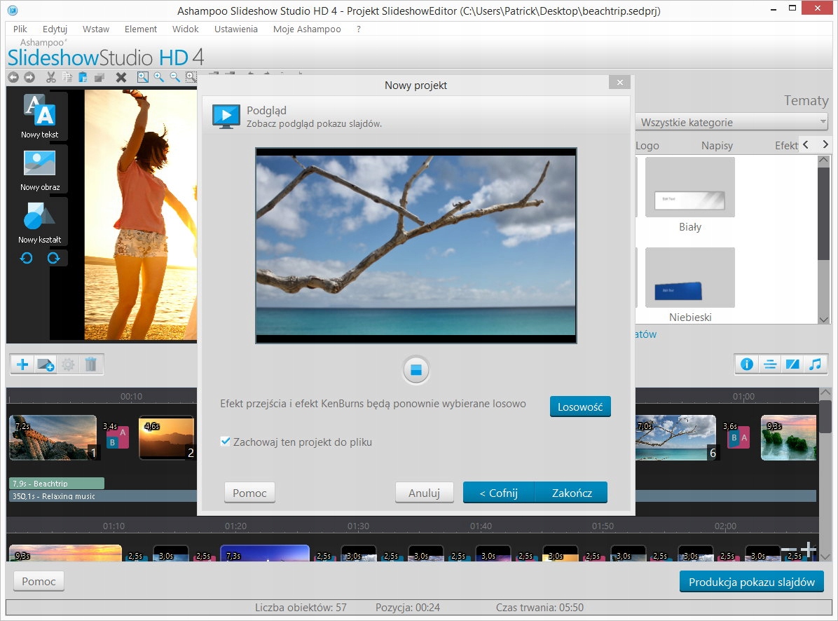 Ashampoo Slideshow Studio HD 4 zmienia Twoje obrazy z przecudowne pokazy slajdów z fantastycznymi efektami. Liczne szablony, przejścia i efekty pozwalają pracować twórczo i osiągać bardzo szybko pożądane wyniki.