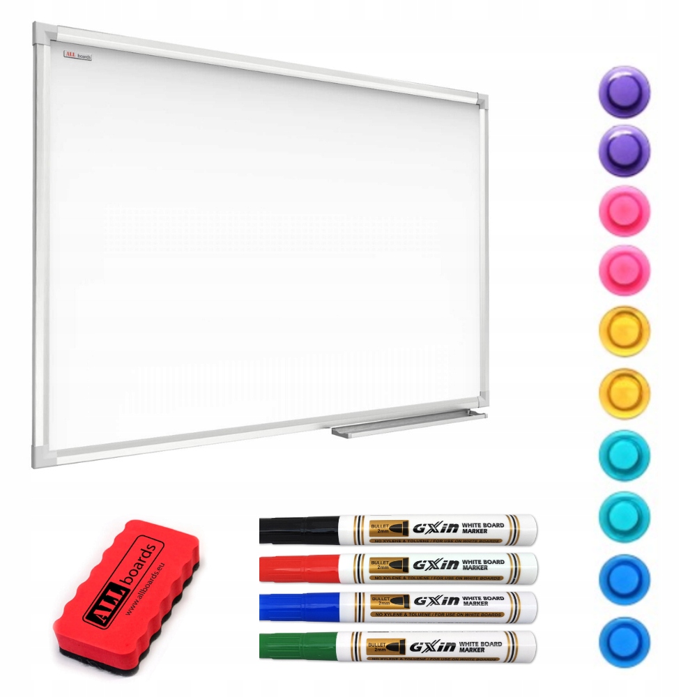 Белая магнитная доска ALLboards изготовлена из жесткий и прочный лист, благодаря которому доска приобретает магнитные свойства. Жесть он покрыт слоем лака, который придает доске белый цвет и гладкость и блеск поверхности. с помощью губки или бумажного полотенца, входящего в комплект. любой тип магнитов: неодимовый, туристический, классический, декоративный. также для использования с магнитными рамками и другими магнитными аксессуарами.